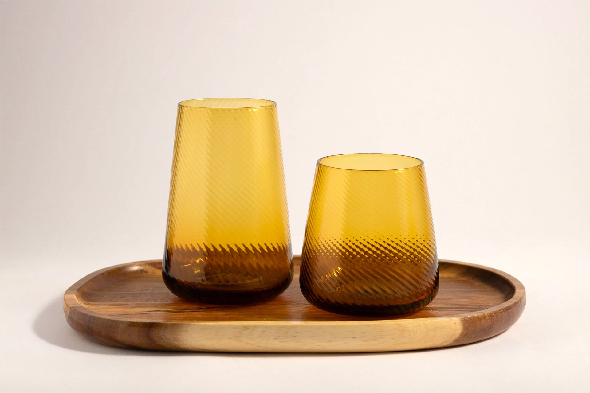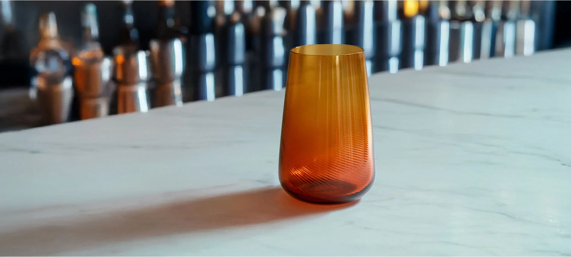 Szklanka AMBER marki Verlo to subtelność zamknięta w ciepłym bursztynowym blasku. Klasyczna forma nabiera lekkości dzięki cienkiemu szkłu sodowemu, które zachwyca szlachetną barwą. Delikatna ścianka naczynia nadaje mu wyjątkową finezję, a subtelne ryflowanie tworzy piękną grę światła, podkreślając głębię koloru. Wykonana z wysokiej jakości szkła sodowego, szklanka AMBER jest trwała, wygodna w codziennym użytkowaniu i bezpieczna do mycia w zmywarce. To połączenie designu i funkcjonalności, które sprawdzi się zarówno w domu, jak i w profesjonalnych wnętrzach restauracyjnych czy hotelowych.
