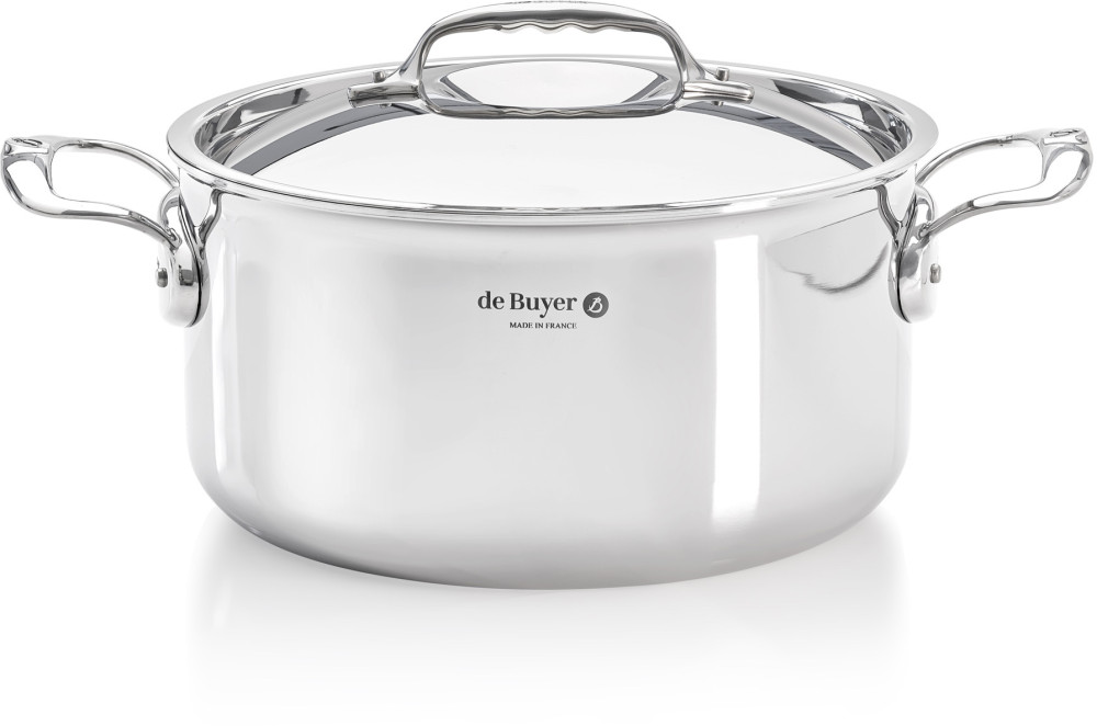 Garnek z pokrywą AFFINITY marki deBuyer wykonany jest z najwyższej jakości stali nierdzewnej i aluminium. Techniczne zalety korpusu naczynia skonstruowanego z pięciu warstw (tj. stal nierdzewna, aluminium, aluminium wzmocnione, aluminium, zewnętrzna stal nierdzewna kompatybilna z indukcją) doceniane są przez szefów kuchni na całym świecie.