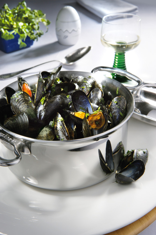 Konstrukcja naczynia jest wyposażona w system blokowania ciepła, który uniemożliwia nagrzewanie się uchwytu w czasie gotowania (rękojeść pozostaje chłodna - maksymalnie 29°C po 30 minutach podgrzewania). Ergonomiczne rączki są solidnie zamocowane nitami, a wykończenie stali na wysoki połysk nadaje szczególnie elegancki wygląd. Pokrywki ze stali umożliwiają gotowanie przy minimalnym użyciu wody, co jest niezwykle korzystne dla zdrowia.