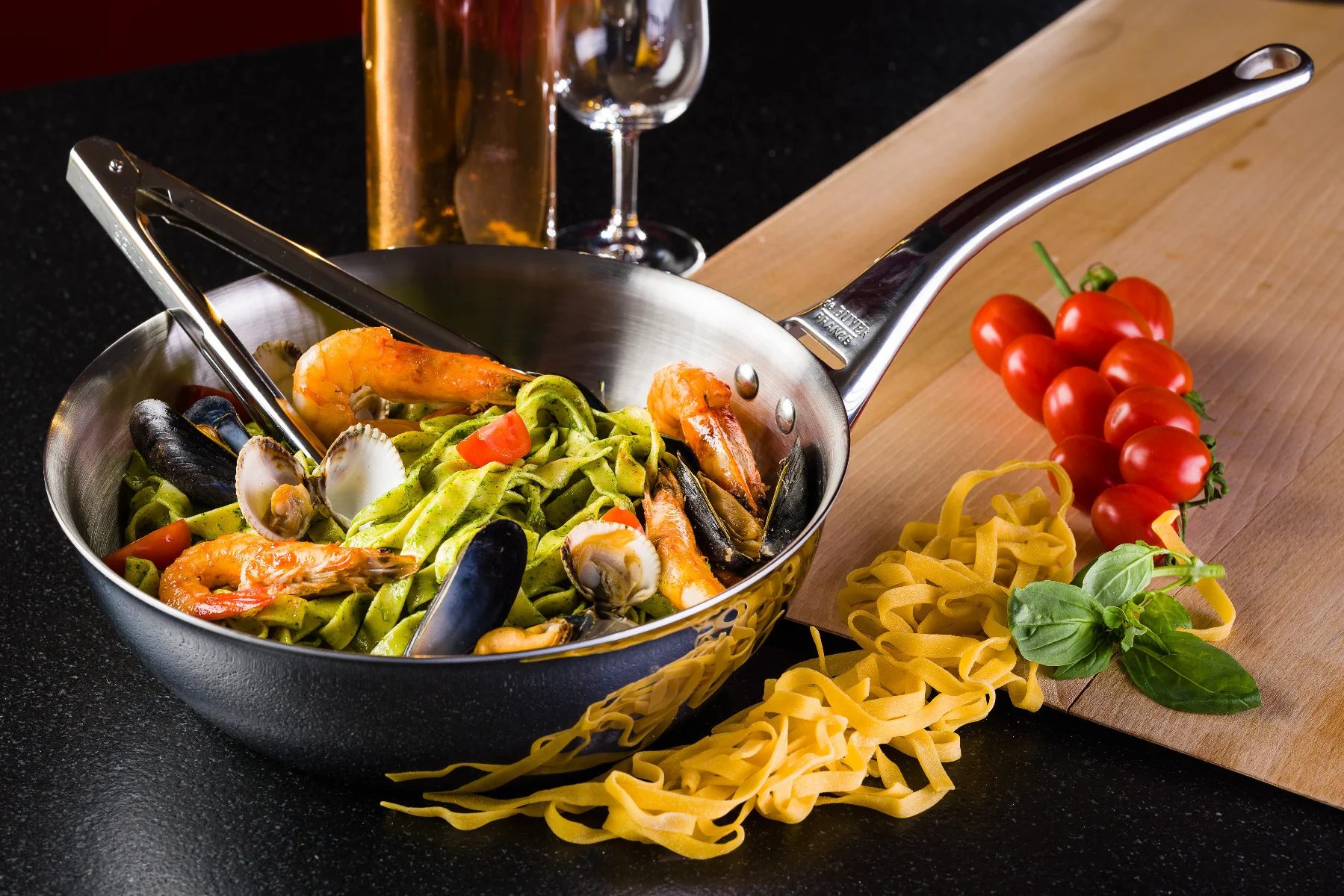 Monoblokowy korpus gwarantuje równomierne rozprowadzanie temperatury oraz bardzo precyzyjną kontrolę procesu gotowania, zbliżoną do tej, którą oferują tradycyjne naczynia miedziane. Taka budowa naczynia zmniejsza zużycie energii oraz i pozwala gotować potrawy z zachowaniem cennych witamin.Rozszerzona krawędź patelni umożliwia szybkie odparowanie, co czyni ją idealną do redukcji sosów. Lekko wywinięty rant umożliwia precyzyjne nalewanie sosów.