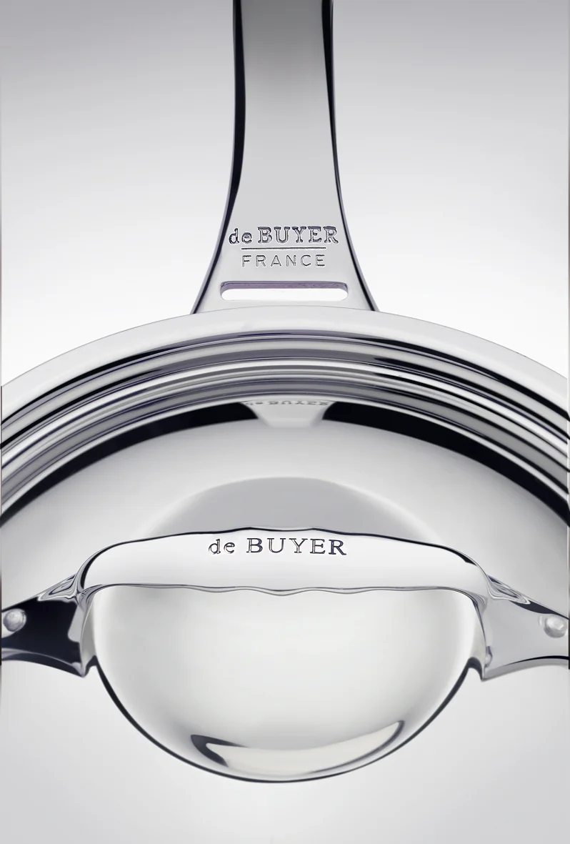 patelnia AFFINITY marki deBuyer wykonana jest z najwyższej jakości stali nierdzewnej i aluminium. Techniczne zalety korpusu naczynia skonstruowanego z pięciu warstw (tj. stal nierdzewna, aluminium, aluminium wzmocnione, aluminium, zewnętrzna stal nierdzewna kompatybilna z indukcją) doceniane są przez szefów kuchni na całym świecie.