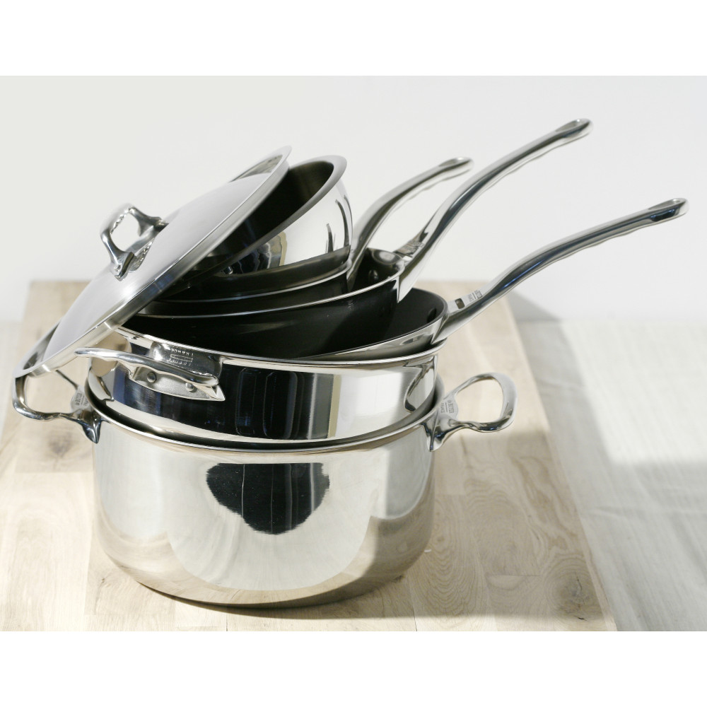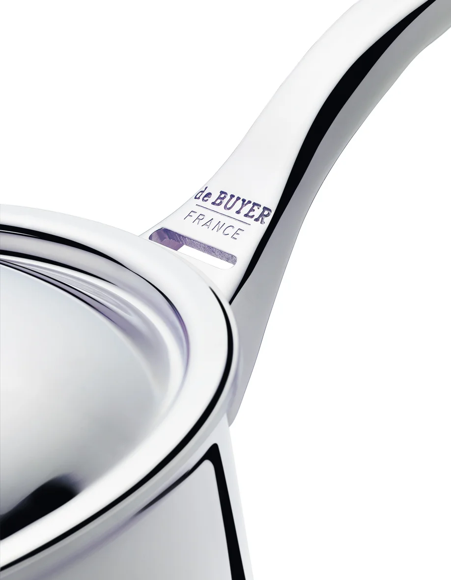 Rondel AFFINITY marki deBuyer wykonany jest z najwyższej jakości stali nierdzewnej i aluminium. Techniczne zalety korpusu naczynia skonstruowanego z pięciu warstw (tj. stal nierdzewna, aluminium, aluminium wzmocnione, aluminium, zewnętrzna stal nierdzewna kompatybilna z indukcją) doceniane są przez szefów kuchni na całym świecie.