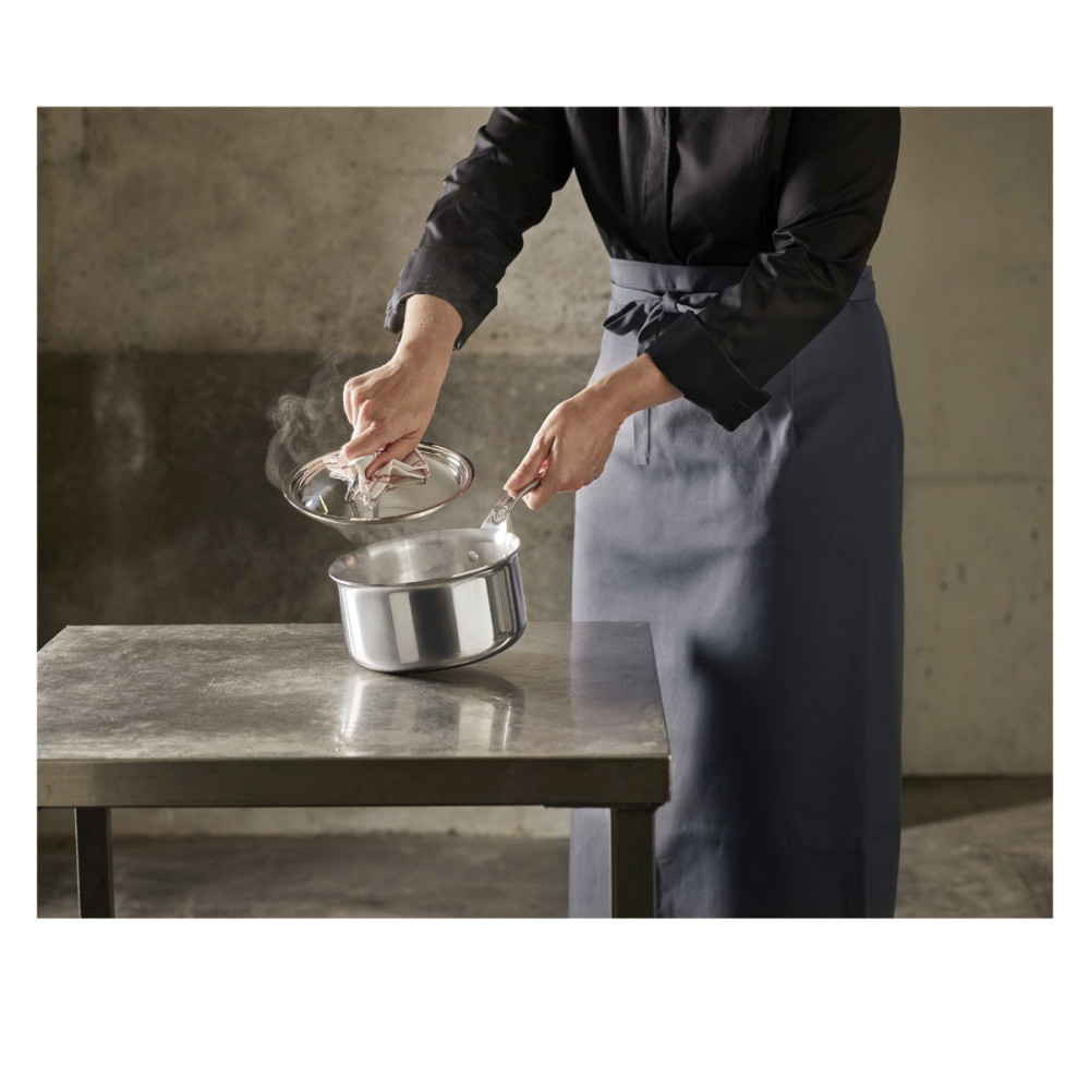 Rondel AFFINITY marki deBuyer wykonany jest z najwyższej jakości stali nierdzewnej i aluminium. Techniczne zalety korpusu naczynia skonstruowanego z pięciu warstw (tj. stal nierdzewna, aluminium, aluminium wzmocnione, aluminium, zewnętrzna stal nierdzewna kompatybilna z indukcją) doceniane są przez szefów kuchni na całym świecie.