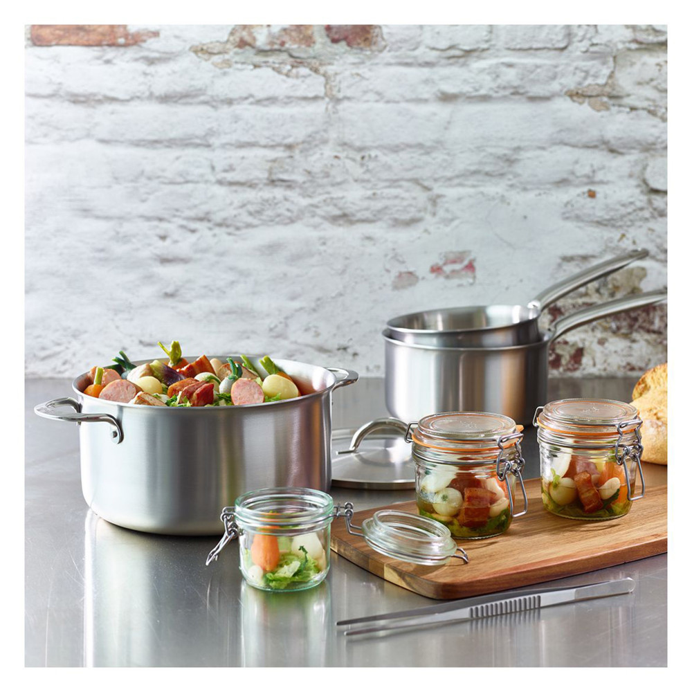 Konstrukcja naczynia uniemożliwia nagrzewanie się uchwytu w czasie gotowania (rękojeść/uchwyt pozostaje chłodna/y). Ergonomiczne uchwyty są solidnie zamocowane nitami, a satynowe wykończenie stali nadaje im interesujący, nowoczesny wygląd. Pokrywki szklane (do kupienia osobno) umożliwiają gotowanie przy minimalnym użyciu wody, co jest niezwykle korzystne dla zdrowia.