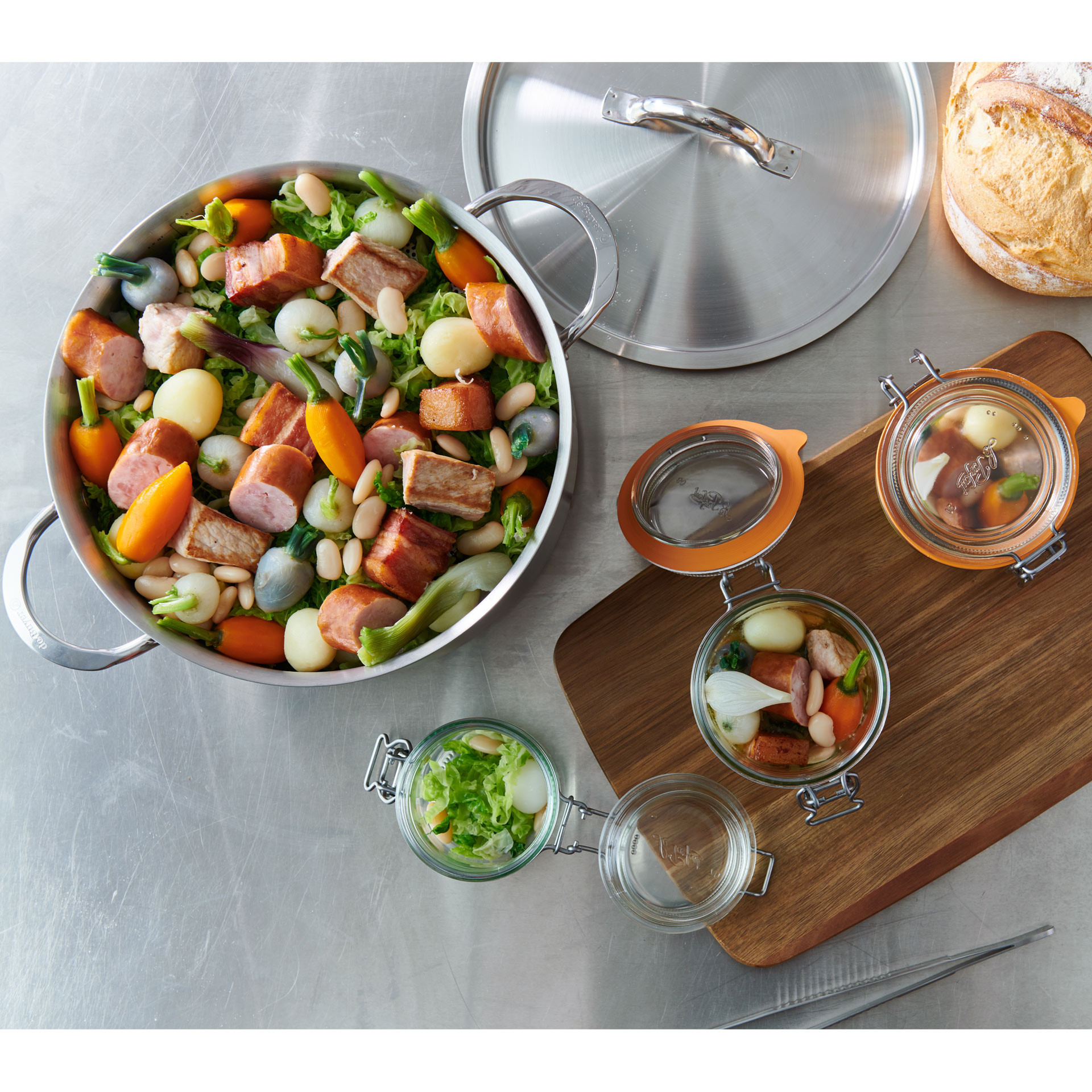 Konstrukcja naczynia uniemożliwia nagrzewanie się uchwytu w czasie gotowania (rękojeść/uchwyt pozostaje chłodna/y). Ergonomiczne uchwyty są solidnie zamocowane nitami, a satynowe wykończenie stali nadaje im interesujący, nowoczesny wygląd. Pokrywki szklane (do kupienia osobno) umożliwiają gotowanie przy minimalnym użyciu wody, co jest niezwykle korzystne dla zdrowia.