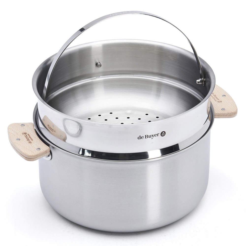 Jako materiał wykorzystano tu wysokiej jakości stal nierdzewną - łatwą do czyszczenia, nietoksyczną i wytrzymałą. Jej 3-warstwowa konstrukcja gwarantuje równomierne rozprowadzanie temperatury i oznacza, że zachowujesz pełną kontrolę nad gotowaniem, nawet w przypadku najdelikatniejszych przepisów. Taka konstrukcja zmniejsza też zużycie energii. Wewnątrz znajduje się przydatna miarka. Uchwyty są solidnie nitowane, zapewniające wieloletnią trwałość i komfort użytkowania. Naczynie może być używane równie ze zdejmowaną rączką D-3660-00 lub z parą uchwytów D-3660-02 z drewna bukowego. Naczynia tej serii można łatwo układać w stosy, co daje możliwość wygodnego przechowywania i oszczędności miejsca. Szczotkowane wykończenie stali nadaje kolekcji szczególnego charakteru. Naczynia nadają się do wszystkich rodzajów płyt grzewczych, w tym indukcyjnych. Po zdemontowaniu rączki lub drewnianych uchwytów naczynia mogą być stosowane również do zapiekania, lub wykończania dań w piekarniku.