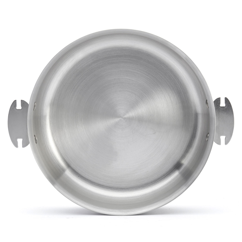 - podwójnie nitowane uchwyty ze stali nierdzewnej gwarantują długoletnią użyteczność, stabilność naczynia oraz możliwość stosowania dwóch rodzajów uchwytów tj. rączki, drewnianych uchwytów