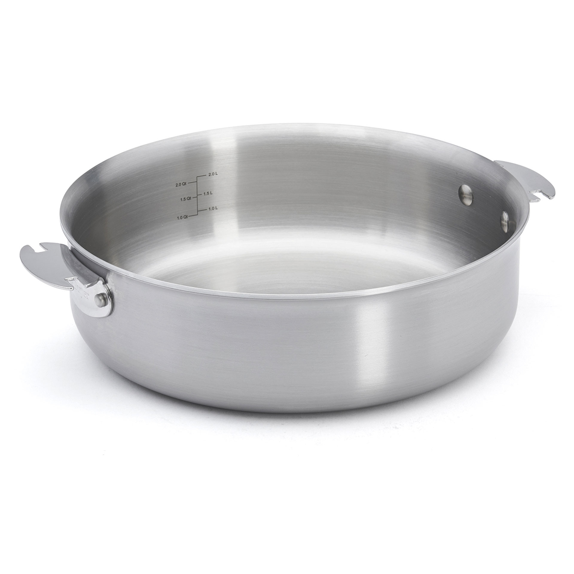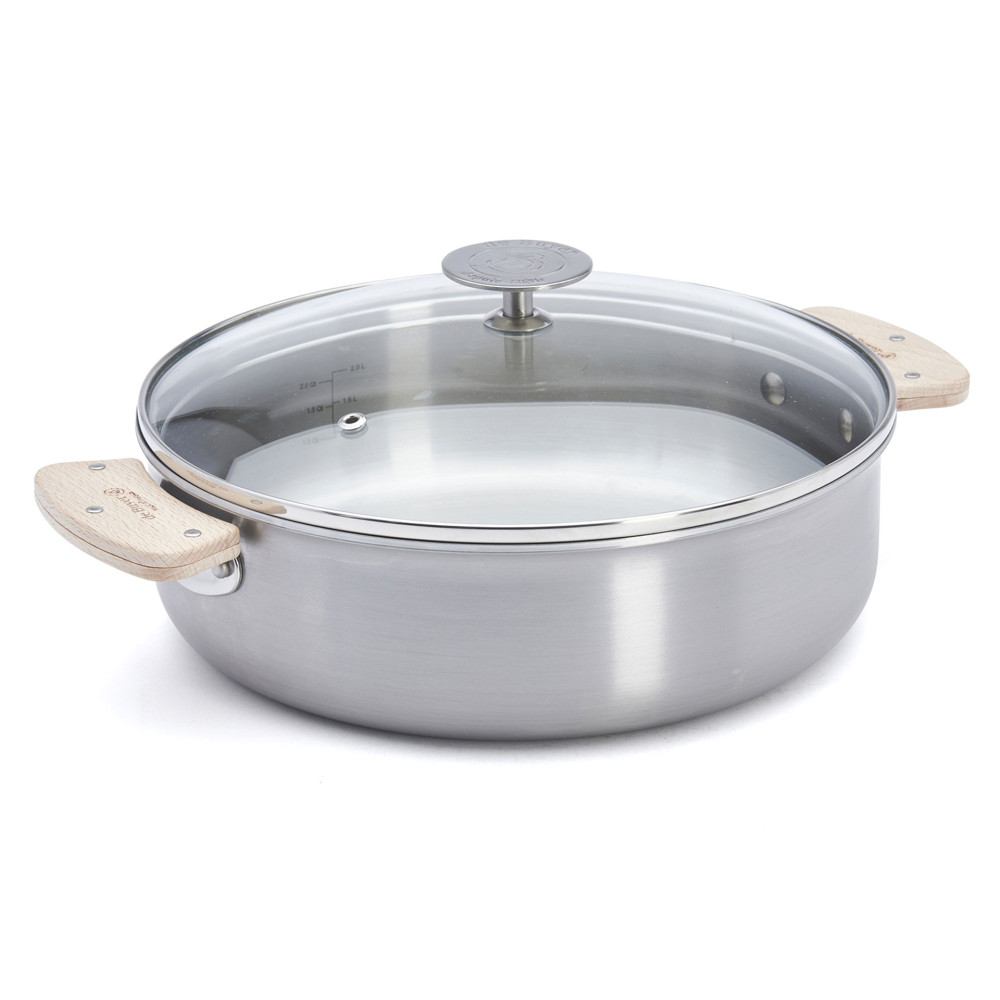 Jako materiał wykorzystano tu wysokiej jakości stal nierdzewną - łatwą do czyszczenia, nietoksyczną i wytrzymałą. Jej 3-warstwowa konstrukcja gwarantuje równomierne rozprowadzanie temperatury i oznacza, że zachowujesz pełną kontrolę nad gotowaniem, nawet w przypadku najdelikatniejszych przepisów. Taka konstrukcja zmniejsza też zużycie energii. Wewnątrz znajduje się przydatna miarka. Uchwyty są solidnie nitowane, zapewniające wieloletnią trwałość i komfort użytkowania. Naczynie może być używane równie ze zdejmowaną rączką D-3660-00 lub z parą uchwytów D-3660-02 z drewna bukowego. Naczynia tej serii można łatwo układać w stosy, co daje możliwość wygodnego przechowywania i oszczędności miejsca. Szczotkowane wykończenie stali nadaje kolekcji szczególnego charakteru. Naczynia nadają się do wszystkich rodzajów płyt grzewczych, w tym indukcyjnych. Po zdemontowaniu rączki, lub drewnianych uchwytów naczynia mogą być stosowane również do zapiekania lub wykończania dań w piekarniku.