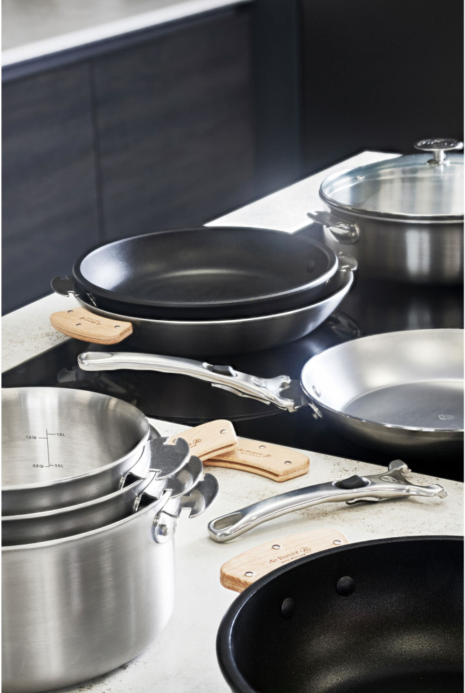 Jako materiał wykorzystano tu wysokiej jakości stal nierdzewną - łatwą do czyszczenia, nietoksyczną i wytrzymałą. Jej 3-warstwowa konstrukcja gwarantuje równomierne rozprowadzanie temperatury i oznacza, że zachowujesz pełną kontrolę nad gotowaniem, nawet w przypadku najdelikatniejszych przepisów. Taka konstrukcja zmniejsza też zużycie energii. Uchwyty są solidnie nitowane, zapewniające wieloletnią trwałość i komfort użytkowania. Naczynie może być używane równie ze zdejmowaną rączką D-3660-00 lub z parą uchwytów D-3660-02 z drewna bukowego. Naczynia tej serii można łatwo układać w stosy, co daje możliwość wygodnego przechowywania i oszczędności miejsca. Szczotkowane wykończenie stali nadaje kolekcji szczególnego charakteru. Naczynia nadają się do wszystkich rodzajów płyt grzewczych, w tym indukcyjnych. Po zdemontowaniu rączki lub drewnianych uchwytów naczynia mogą być stosowane również do zapiekania lub wykończania dań w piekarniku.