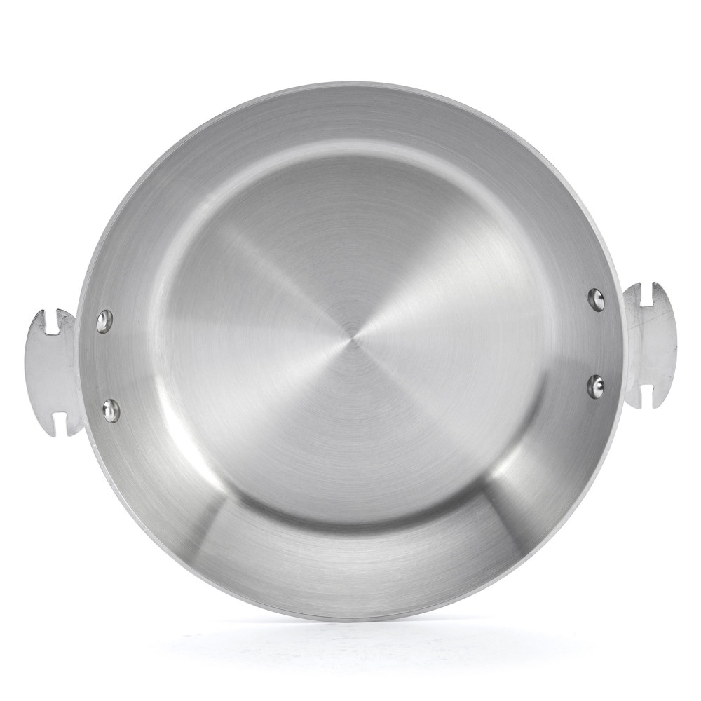 - podwójnie nitowane uchwyty ze stali nierdzewnej gwarantują długoletnią użyteczność, stabilność naczynia oraz możliwość stosowania dwóch rodzajów uchwytów tj. rączki, drewnianych uchwytów