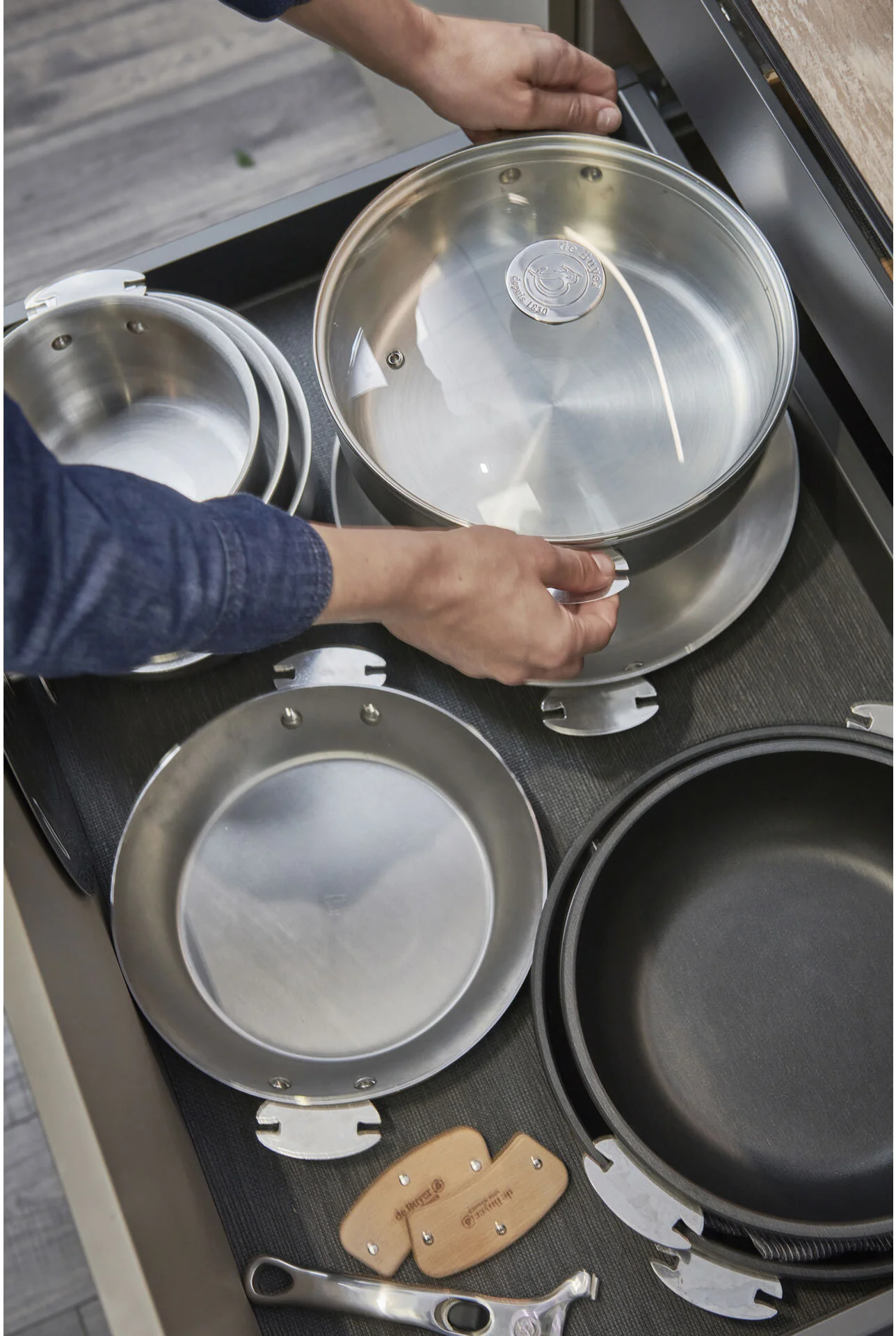 Jako materiał wykorzystano tu wysokiej jakości stal nierdzewną - łatwą do czyszczenia, nietoksyczną i wytrzymałą. Jej 3-warstwowa konstrukcja gwarantuje równomierne rozprowadzanie temperatury i oznacza, że zachowujesz pełną kontrolę nad gotowaniem, nawet w przypadku najdelikatniejszych przepisów. Taka konstrukcja zmniejsza też zużycie energii. Uchwyty są solidnie nitowane, zapewniające wieloletnią trwałość i komfort użytkowania. Naczynie może być używane równie ze zdejmowaną rączką D-3660-00 lub z parą uchwytów D-3660-02 z drewna bukowego. Naczynia tej serii można łatwo układać w stosy, co daje możliwość wygodnego przechowywania i oszczędności miejsca. Szczotkowane wykończenie stali nadaje kolekcji szczególnego charakteru. Naczynia nadają się do wszystkich rodzajów płyt grzewczych, w tym indukcyjnych. Po zdemontowaniu rączki lub drewnianych uchwytów naczynia mogą być stosowane również do zapiekania lub wykończania dań w piekarniku.