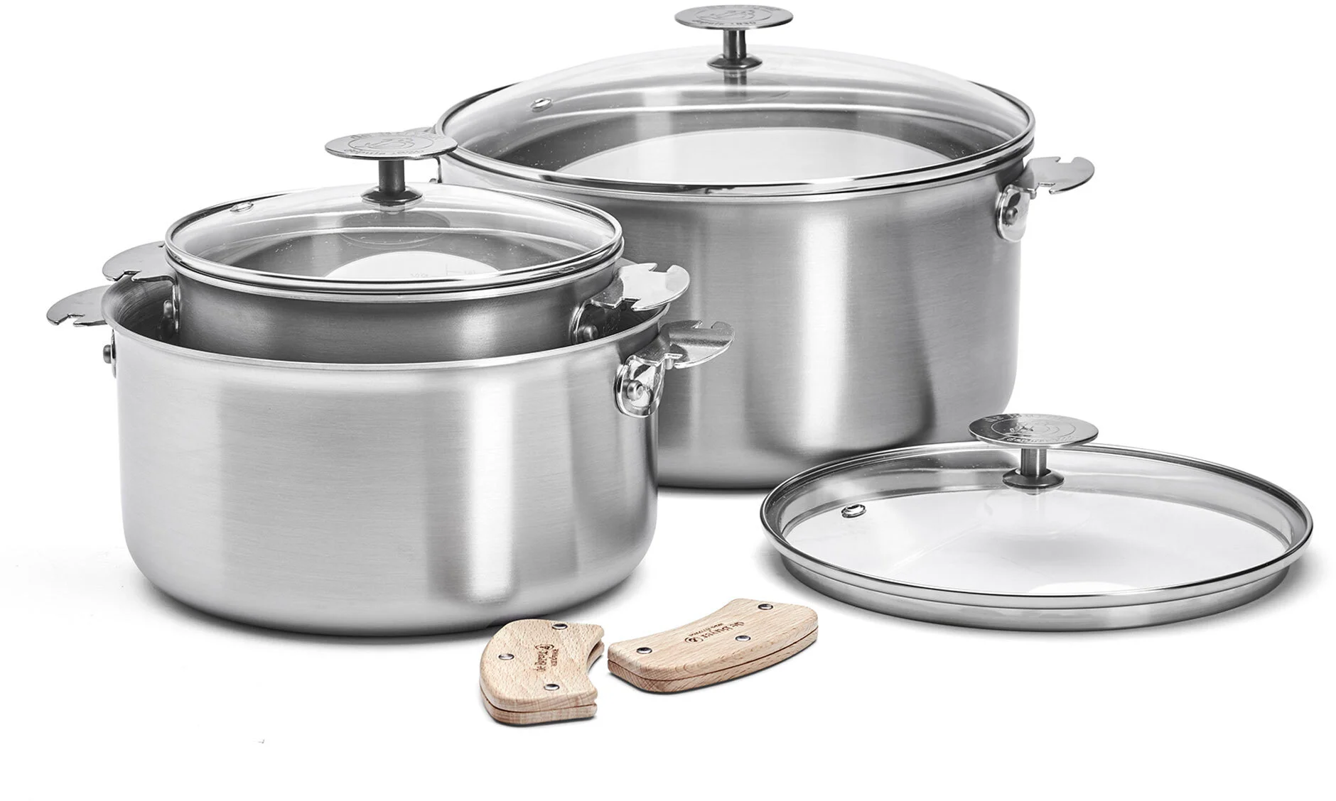 ALCHIMY LOQY Zestaw 3 garnków z pokrywkami i uchwytami / DE BUYER