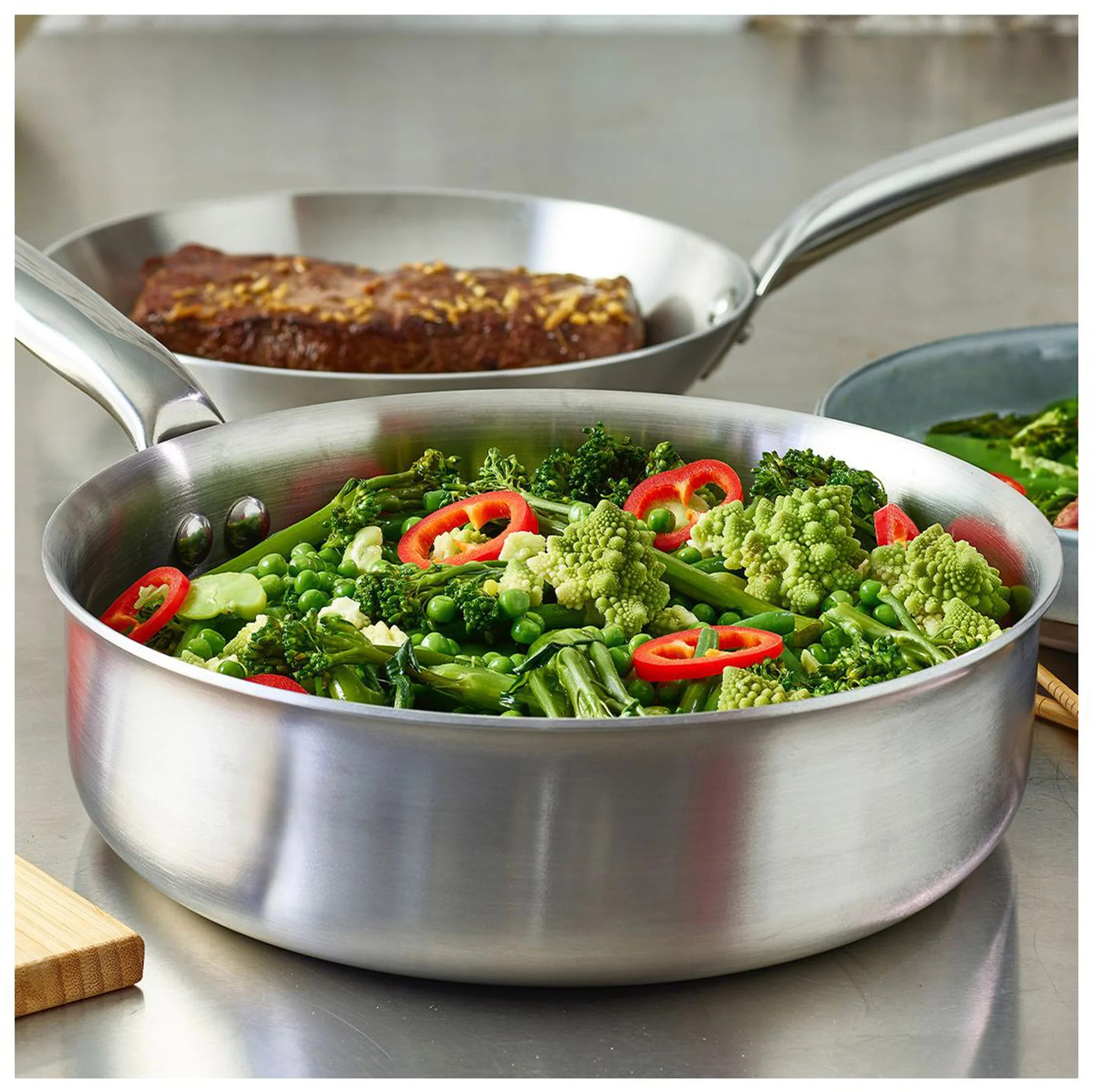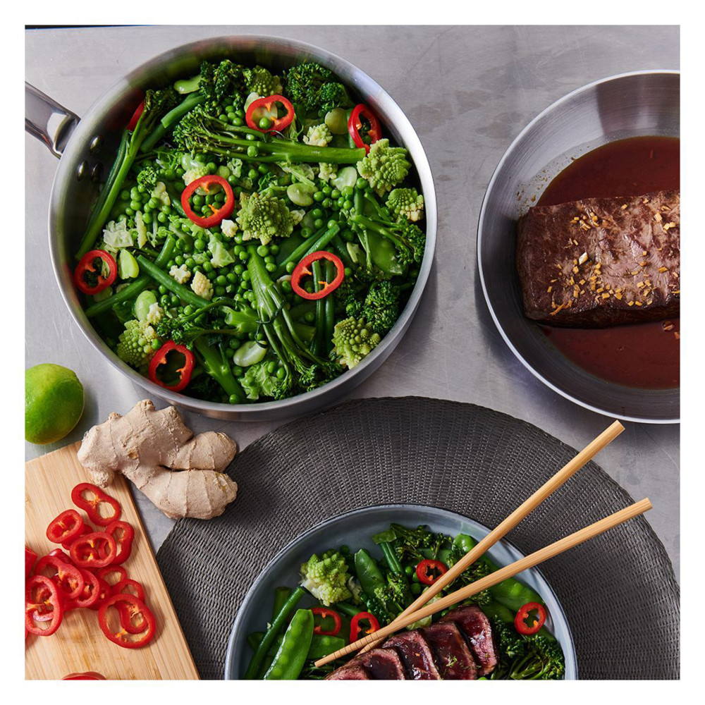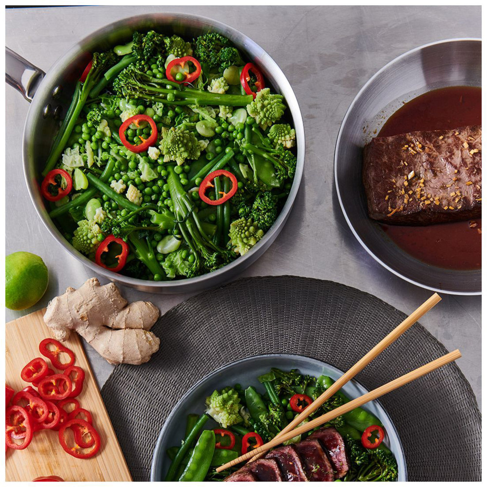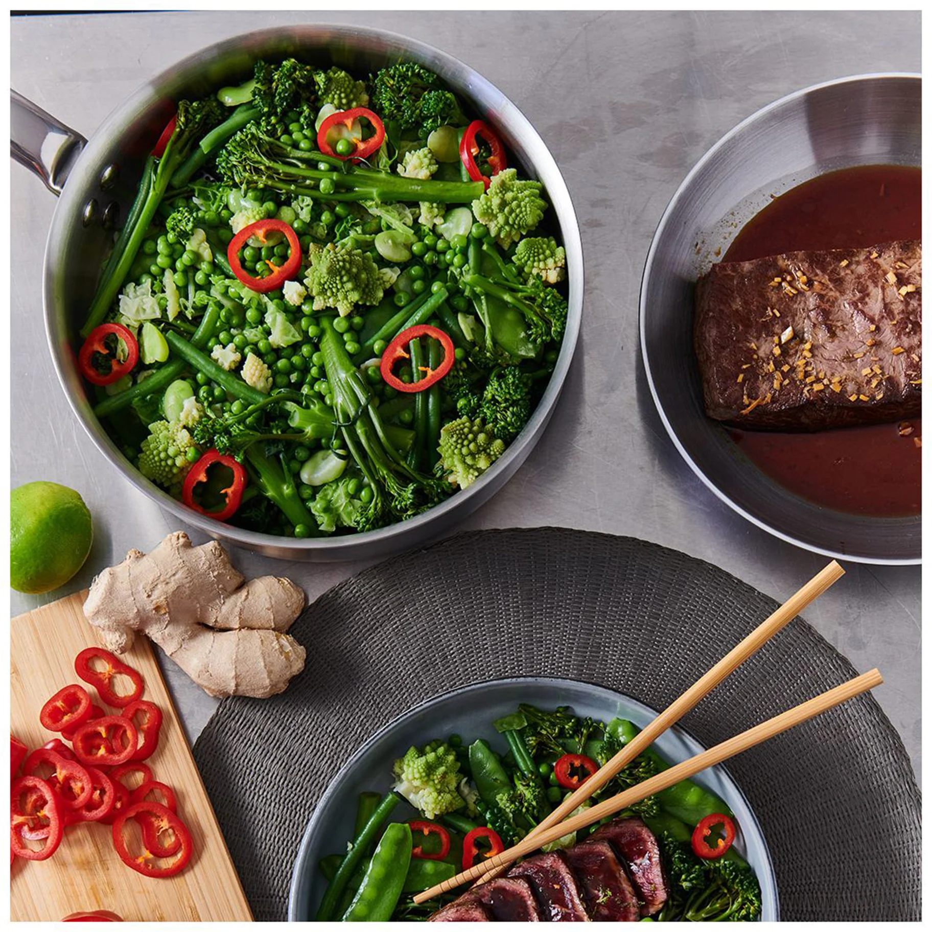 Konstrukcja naczynia uniemożliwia nagrzewanie się uchwytu w czasie gotowania (rękojeść pozostaje chłodna). Ergonomiczny uchwyt jest solidnie mocowany nitami, a satynowe wykończenie stali nadaje im interesujący, nowoczesny wygląd. Pokrywki szklane (do kupienia osobno) umożliwiają gotowanie przy minimalnym użyciu wody, co jest niezwykle korzystne dla zdrowia.