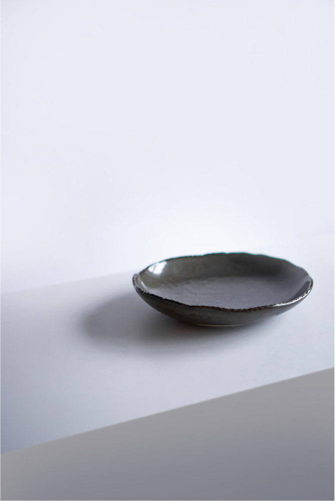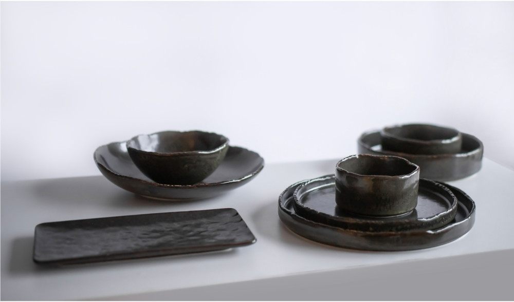 Prosta, minimalistyczna forma tych naczyń oraz ciemna kolorystyka pięknie skomponuje się zarówno w minimalistycznej aranżacji kuchni czy jadali, jak również w bardziej rustykalnych wnętrzach. Subtelne, półmatowe wykończenie naczyń wspaniale podkreśla lekko nakrapianą glazurę i przenikanie się barw. Dodatkowo, nieregularnie wykończone brzegi nadają każdemu naczyniu indywidualny