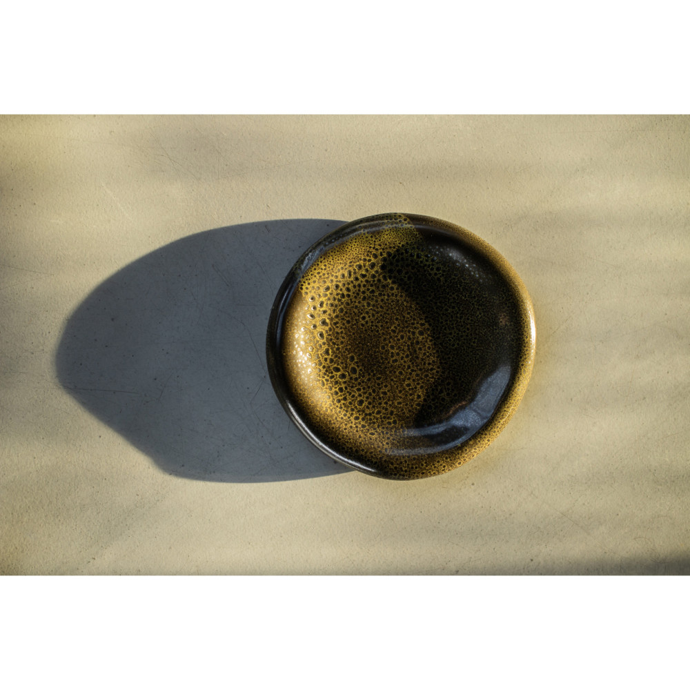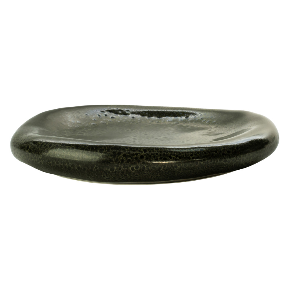 Prosta, minimalistyczna forma tych naczyń oraz ciemna kolorystyka pięknie skomponuje się zarówno w minimalistycznej aranżacji kuchni czy jadali, jak również w bardziej rustykalnych wnętrzach. Subtelne, półmatowe wykończenie naczyń wspaniale podkreśla lekko nakrapianą glazurę i przenikanie się barw. Dodatkowo, nieregularnie wykończone brzegi nadają każdemu naczyniu indywidualny