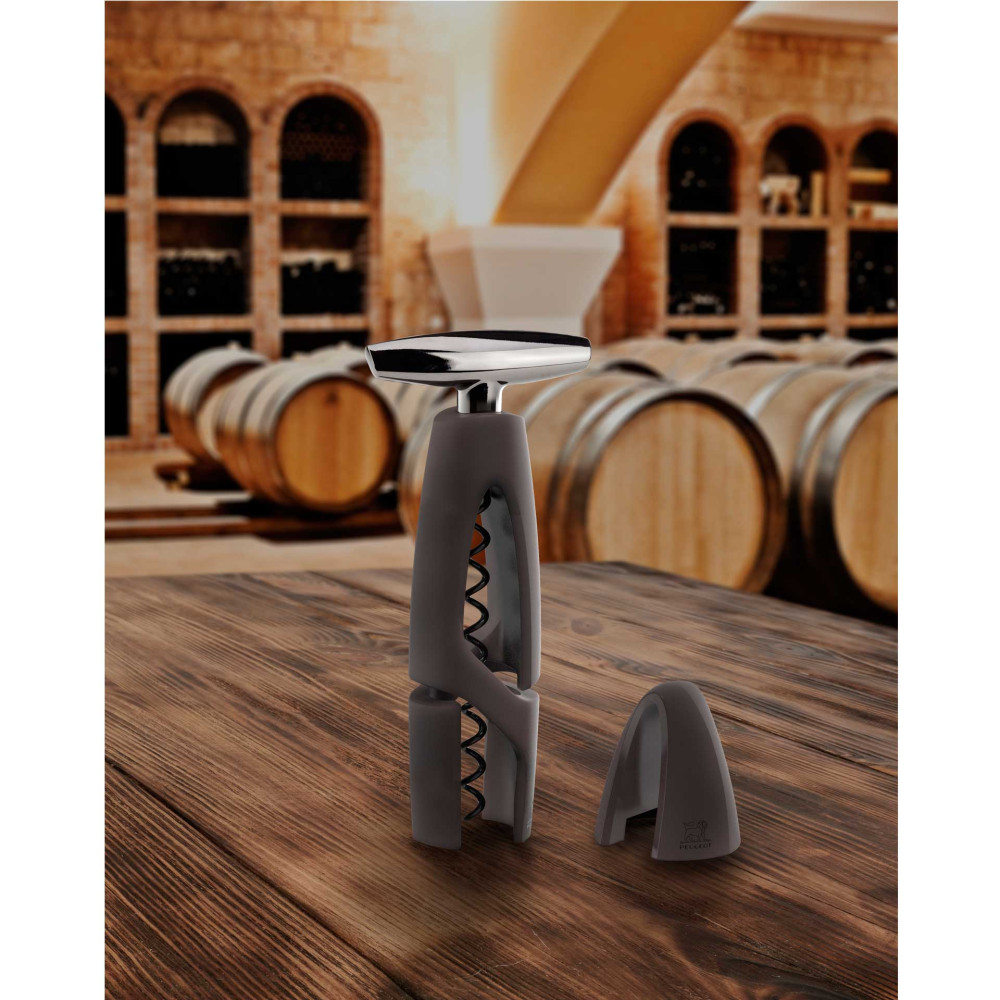 Korkociąg Peugeot Altar to korkociąg z mechanizmem śrubowym zaprojektowany tak, aby oferować maksymalną przyjemność przy minimalnym wysiłku. Centralną osią tego korkociągu jest spirala, która działa intuicyjnie. Wystarcza bez żadnego wysiłku obracać korkociąg! Działa dobrze z każdą butelką wina. Odważny i nowoczesny design, jest wykonany z ABS, wysokiej jakości tworzywa sztucznego. Satynowe w dotyku wykończenie zapewnia wyjątkowo miękki i wygodny chwyt. Ergonomiczna rękojeść wykonana jest ze znalu (stop cynku i aluminium). Do korkociągu dołączony jest przecinak do folii. Dostępny w dwóch wariantach kolorystycznych.
