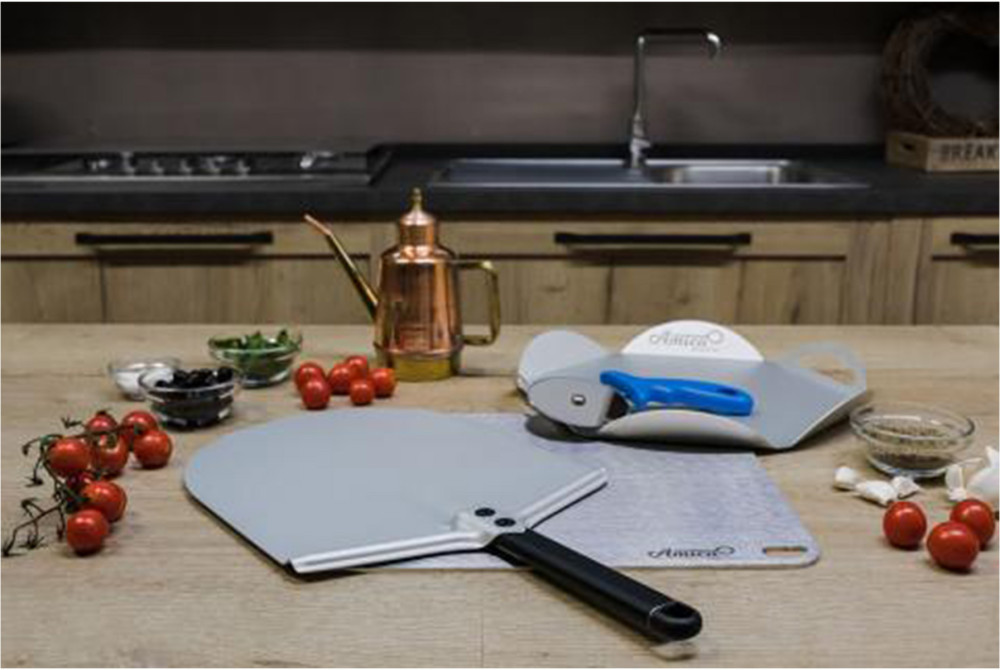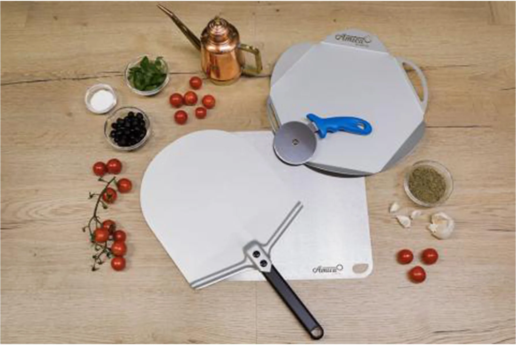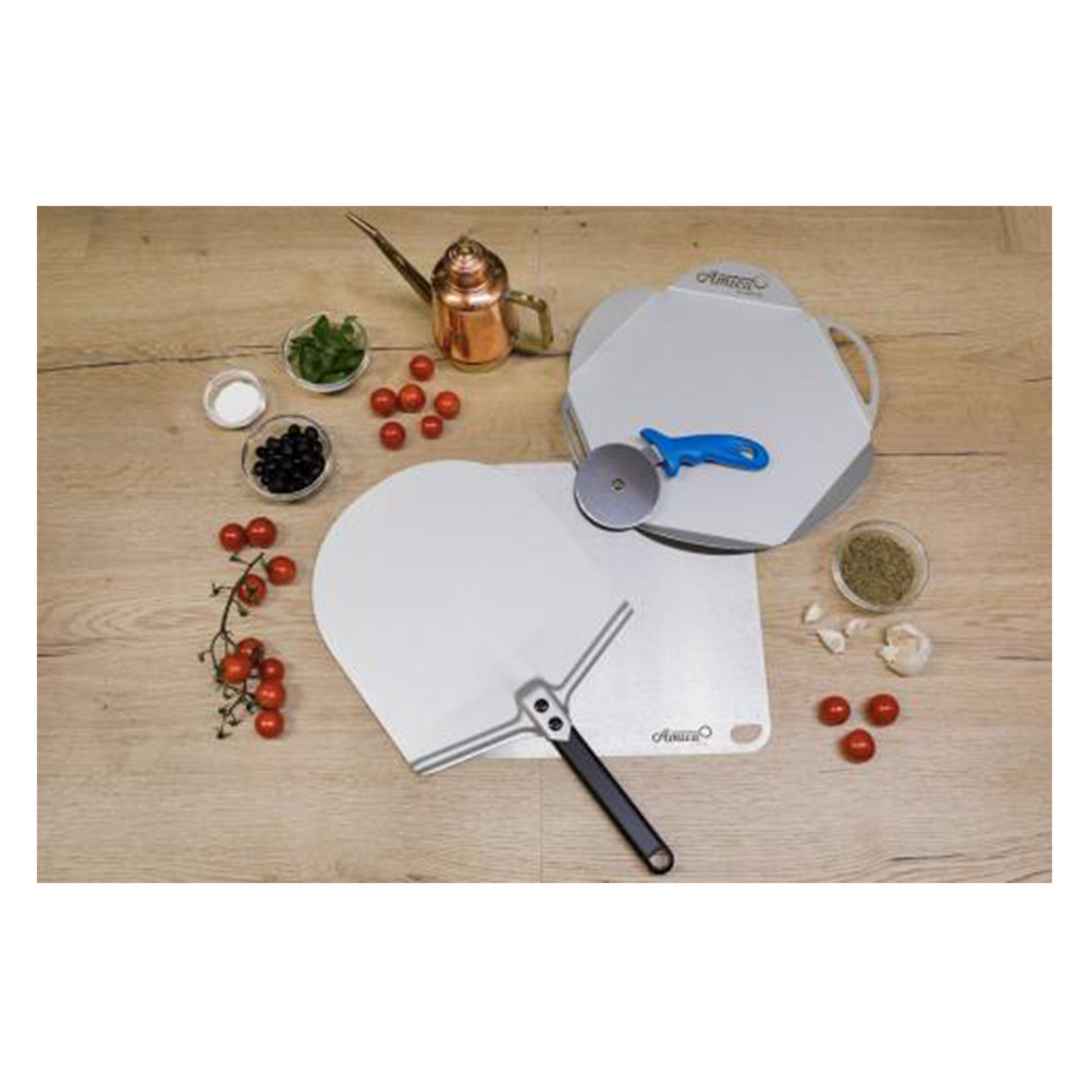 Zestaw do pizzy Amica od Gimetal składający się z łopaty do pizzy, tacy i krążka tnącego jest wszystkim, czego potrzebujesz, aby zrobić i podać smaczną i doskonałą pizzę jak w pizzerii. Robienie domowej pizzy nigdy nie było łatwiejsze!