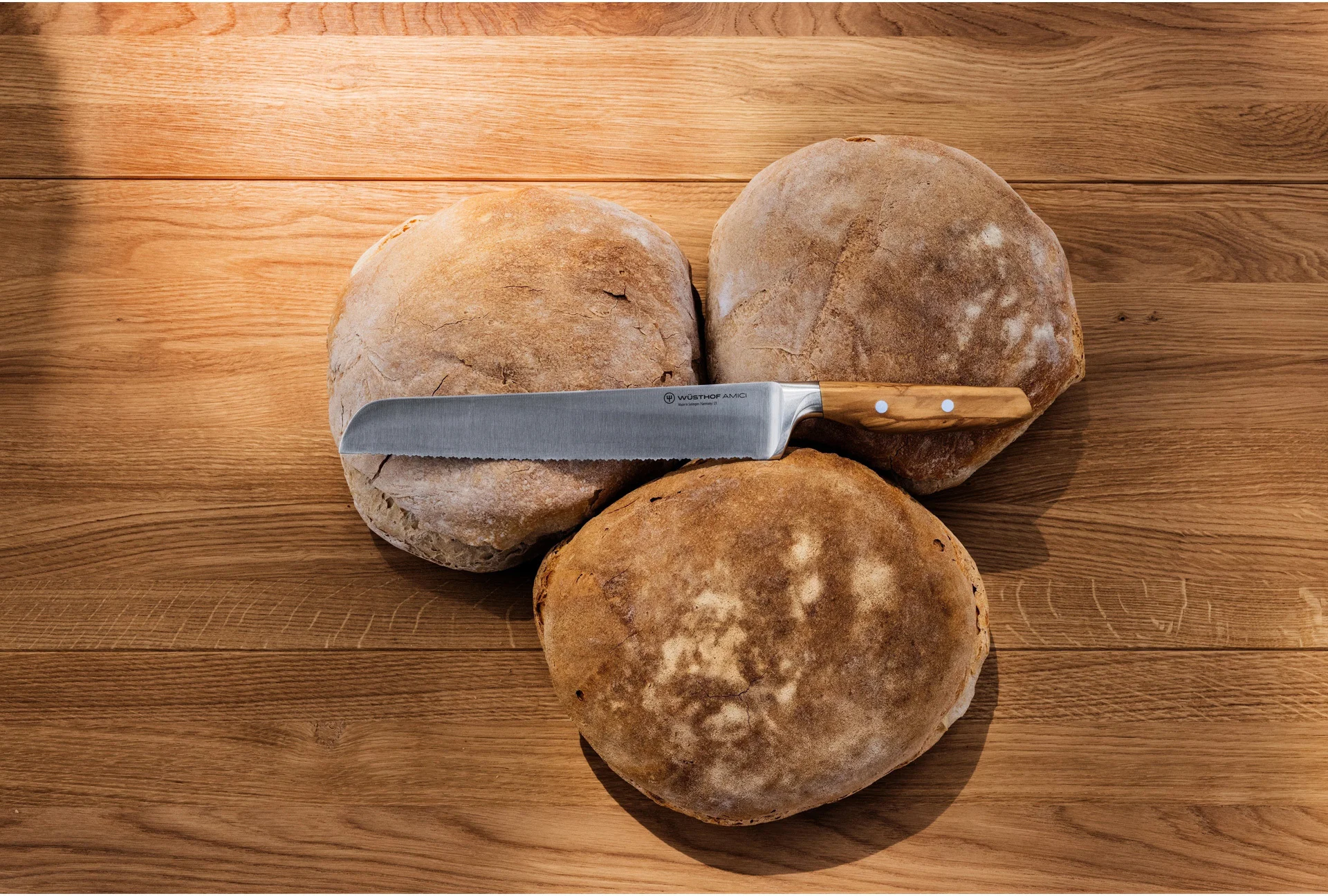 Noże serii AMICI łączą kultowe, precyzyjnie wykute ostrza z których znana jest marka Wusthof z wyszukanymi rękojeściami z kalabryjskiego drewna oliwnego. Połączenie nowoczesnego rzemiosła doskonalonego do stuleci z włoskim designem, tworzy idealny nóż, idealny, aby przygotowanie posiłku i wspólne jego spożycie były prawdziwą radością. Benvenuti Amici.