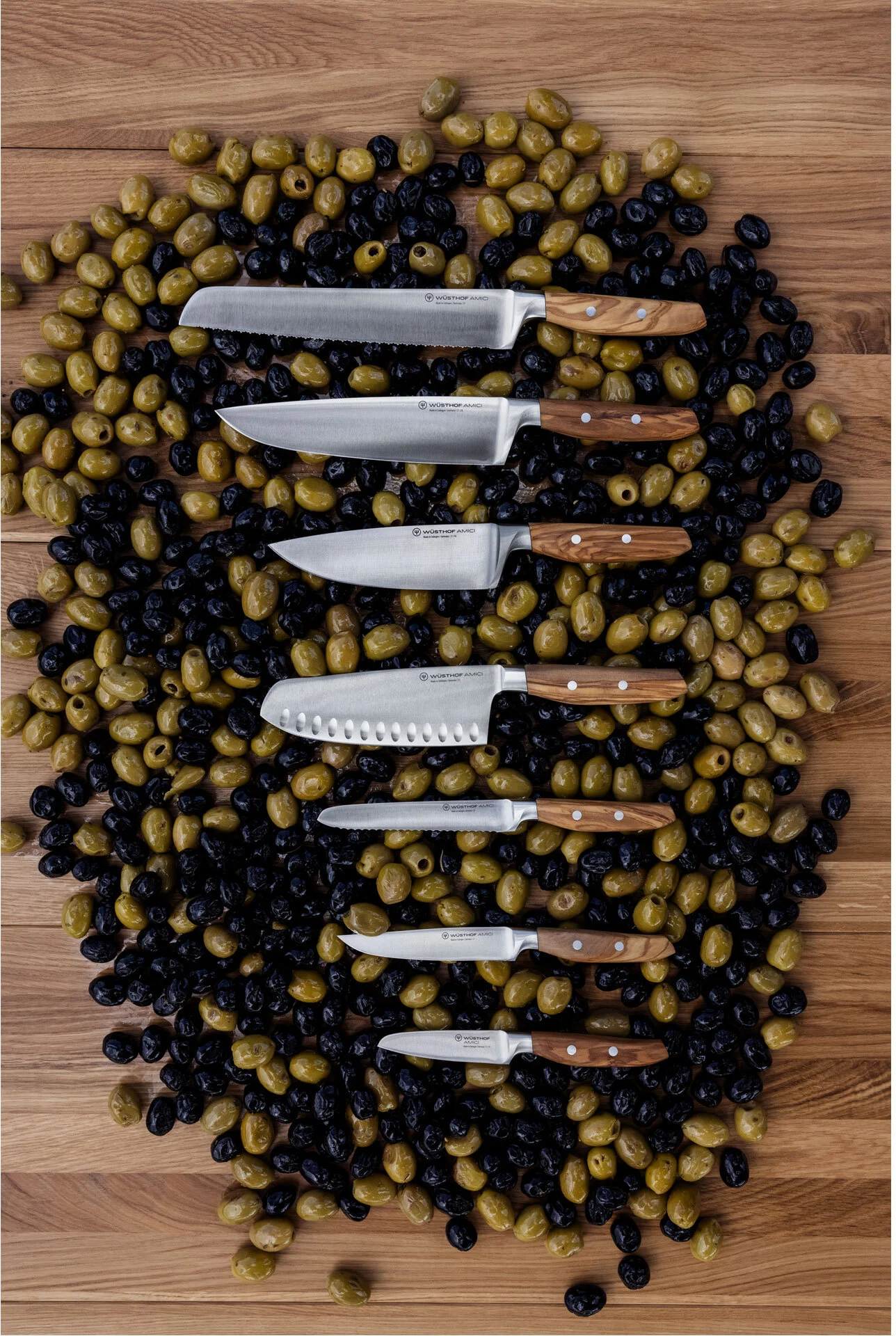 Noże serii AMICI łączą kultowe, precyzyjnie wykute ostrza z których znana jest marka Wusthof z wyszukanymi rękojeściami z kalabryjskiego drewna oliwnego. Połączenie nowoczesnego rzemiosła doskonalonego do stuleci z włoskim designem, tworzy idealny nóż, idealny, aby przygotowanie posiłku i wspólne jego spożycie były prawdziwą radością. Benvenuti Amici.