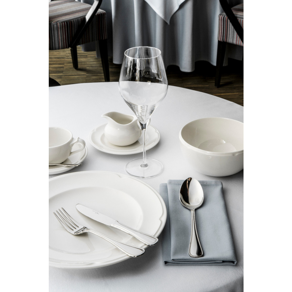ANSER. Dzięki klasycznemu wzornictwu Anser idealnie pasuje do każdego nakrycia stołu. Charakterystycznie ryflowana linia na brzegu rękojeści nadaje tej kolekcji stylowego, szlachetnego looku. Zestaw sztućców idealny dla firm cateringowych, bankietowych, restauracji. W połączeniu ze stylową porcelaną z kolekcji ANNA marki Rak Porcelain skompletujesz niezwykle stylową zastawę stołową.