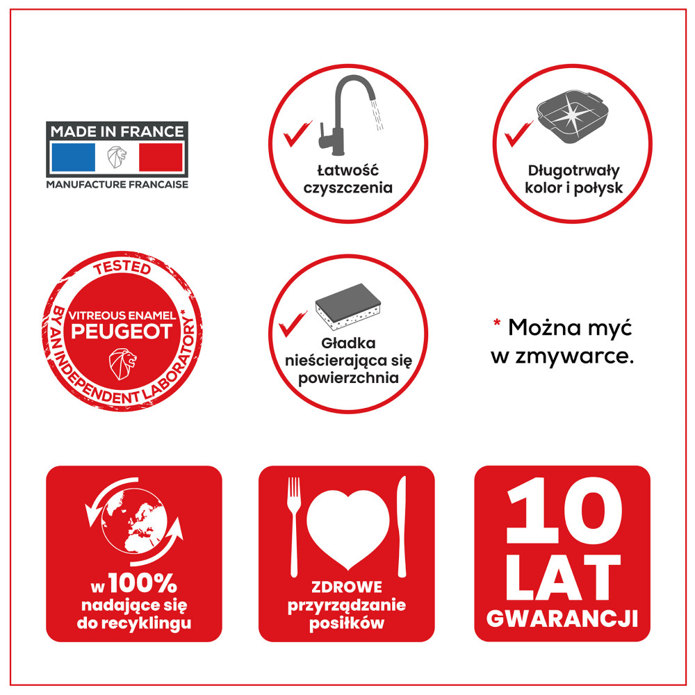 Marka Peugeot oferuje najwyższej jakości ceramiczne naczynia do zapiekania APPOLIA. Okrągłe, prostokątne i owalne, dostępne w różnych rozmiarach i kolorach, będą idealnym wyborem dla miłośników smacznej i zdrowej kuchni. Doskonałe do wszelkich zapiekanek, mięs, lasagne, ryb, zapiekanych warzyw czy ciast i deserów.