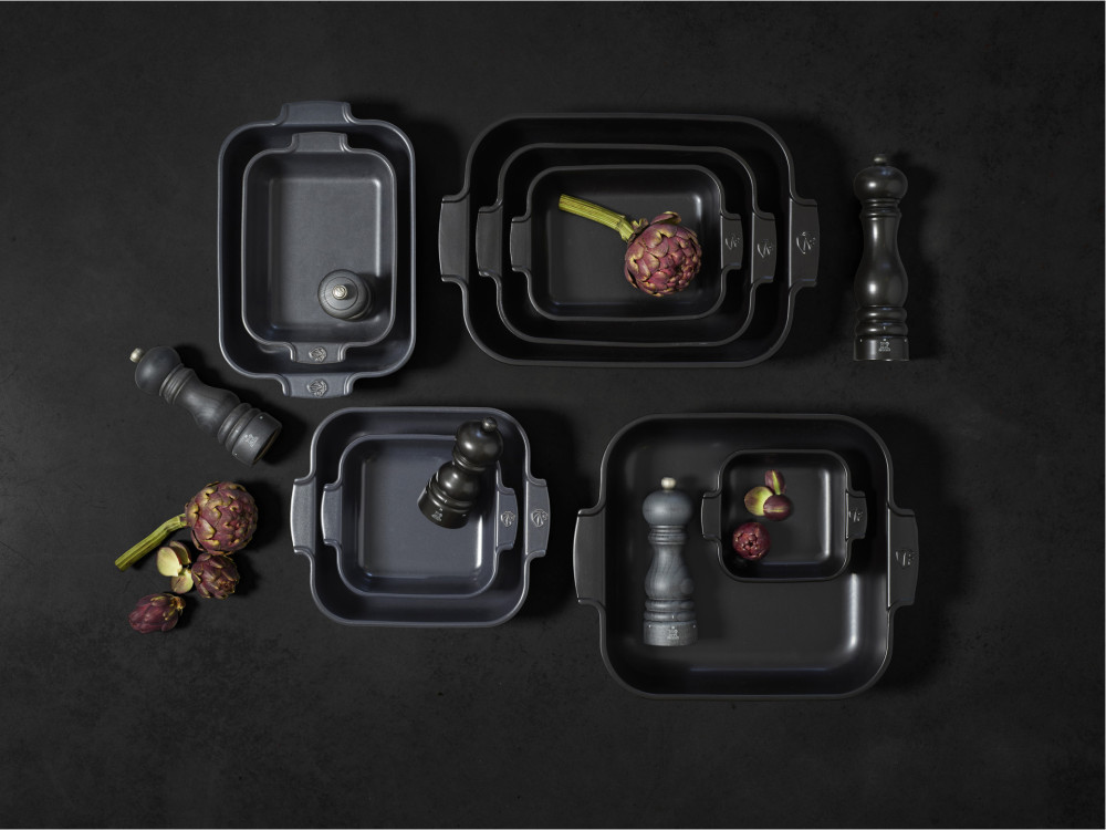 Marka Peugeot oferuje najwyższej jakości ceramiczne naczynia do zapiekania APPOLIA. Okrągłe, prostokątne i owalne, dostępne w różnych rozmiarach i kolorach, będą idealnym wyborem dla miłośników smacznej i zdrowej kuchni. Doskonałe do wszelkich zapiekanek, mięs, lasagne, ryb, zapiekanych warzyw czy ciast i deserów.