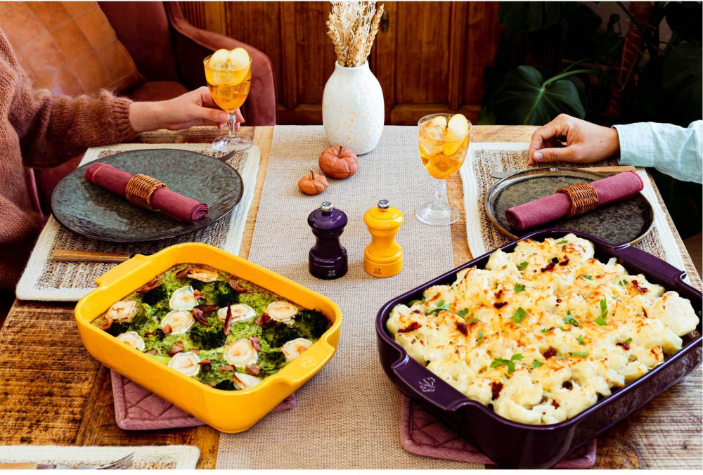 Marka Peugeot oferuje najwyższej jakości ceramiczne naczynia do zapiekania APPOLIA. Okrągłe, prostokątne i owalne, dostępne w różnych rozmiarach i kolorach, będą idealnym wyborem dla miłośników smacznej i zdrowej kuchni. Doskonałe do wszelkich zapiekanek, mięs, lasagne, ryb, zapiekanych warzyw czy ciast i deserów.