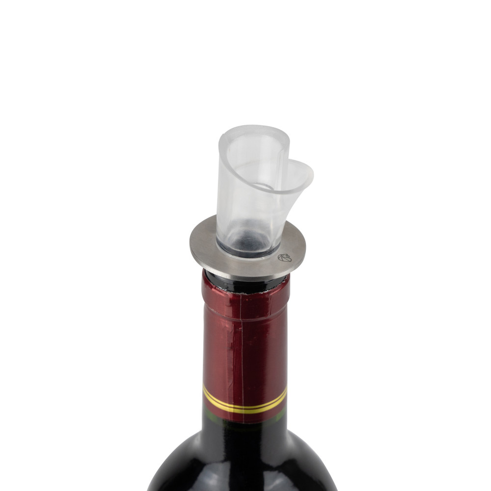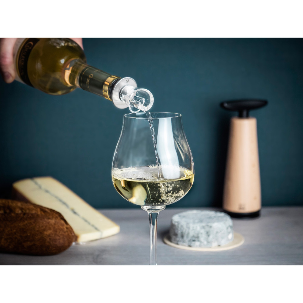 Nalewak do wina Arum to niezbędne akcesorium dla każdego miłośnika wina, zapewniające eleganckie i bezproblemowe serwowanie. Specjalnie zaprojektowany kształt nalewaka powstrzymuje kapanie i cofa ostatnią kroplę wina do butelki, co utrzymuje obrus w czystości. Zintegrowana funkcja wentylacji dostarcza tlen do wina, umożliwiając rozwinięcie jego pełnych aromatów. Nalewak pasuje do większości standardowych butelek do wina. Po użyciu nalewak można łatwo przepłukać ciepłą wodą, co czyni go idealnym rozwiązaniem dla użytku domowego oraz restauracji, hoteli, barów. Silikonowy aerator stymuluje aromat wina, a estetycznie zaprojektowana końcówka kontroluje nalewanie, zapobiegając plamom na stole czy barze.