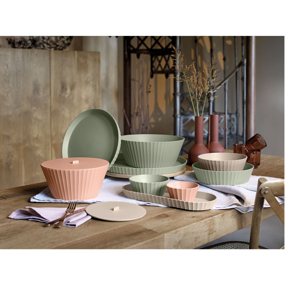 Zachowawczość pięknych, pastelowych barw, prostota formy, dbałość o szczegóły geometryczne i ergonomię to wszystko tworzy harmonijną i doskonałą kompozycję dekoracji stołu. Blim Plus oferuje nową ideę kuchni zaprojektowaną z pełnym poszanowaniem środowiska dzięki jakościowemu i świadomemu wykorzystaniu tworzywa sztucznego.