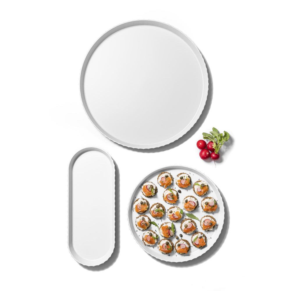 Przyrządzaj, przechowuj i podawaj ulubione potrawy na designerskich, wielofunkcyjnych tacach. Pasują do różnych stylów aranżacji stołu. Doskonale sprawdzą się zarówno podczas przyjęć organizowanych wewnątrz pomieszczeń jak i na świeżym powietrzu. Są lekkie i wygodne w serwowaniu. Tace doskonale komponują się z pozostałymi elementami kolekcji PAESTUM i mogą być uzupełnieniem kolekcji mis NETTUNO i HERA. Stwórz własną kolekcję, łącząc różne kolory i rozmiary naczyń. Staną się one z pewnością niezastąpionym towarzyszem każdego przyjęcia czy posiłku.
