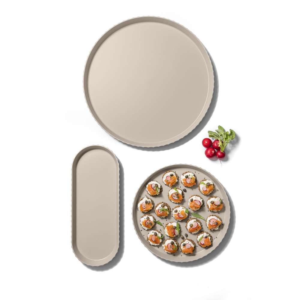 Przyrządzaj, przechowuj i podawaj ulubione potrawy na designerskich, wielofunkcyjnych tacach. Pasują do różnych stylów aranżacji stołu. Doskonale sprawdzą się zarówno podczas przyjęć organizowanych wewnątrz pomieszczeń jak i na świeżym powietrzu. Są lekkie i wygodne w serwowaniu. Tace doskonale komponują się z pozostałymi elementami kolekcji PAESTUM i mogą być uzupełnieniem kolekcji mis NETTUNO i HERA. Stwórz własną kolekcję, łącząc różne kolory i rozmiary naczyń. Staną się one z pewnością niezastąpionym towarzyszem każdego przyjęcia czy posiłku.