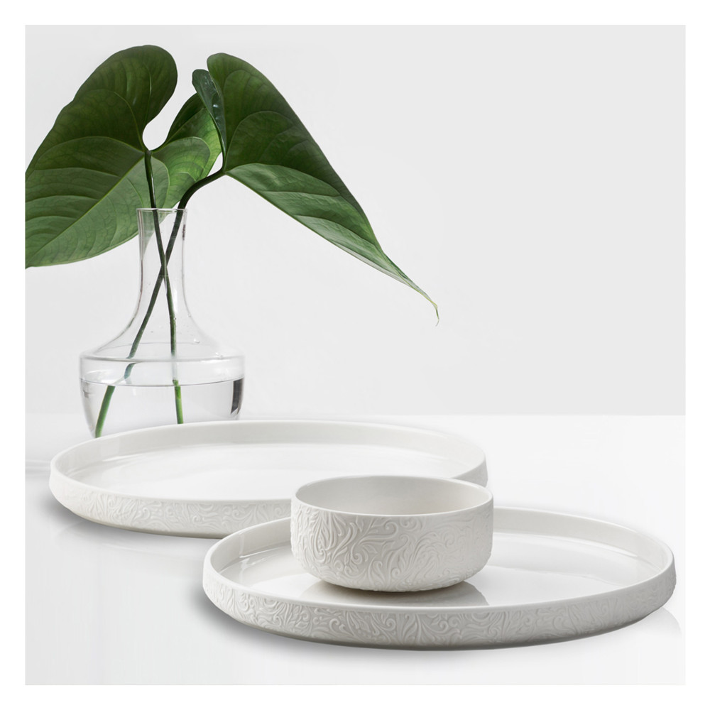 AZZUR to propozycja dla miłośników delikatnej porcelany. Subtelne wzory to wyróżniający element linii AZZUR. Niebanalne połączenie gładkiego matu z błyszczącym wykończeniem wewnętrznej części naczyń nadaje niepowtarzalny efekt. Aby dodać szczyptę ekstrawagancji, polecamy połączyć naczynia tej linii z czarnymi sztućcami SU BLACK. Prosta forma płaskich talerzy oraz mis z prostym-minimalistycznym rantem, nadaje całej kolekcji niezwykłej lekkości.