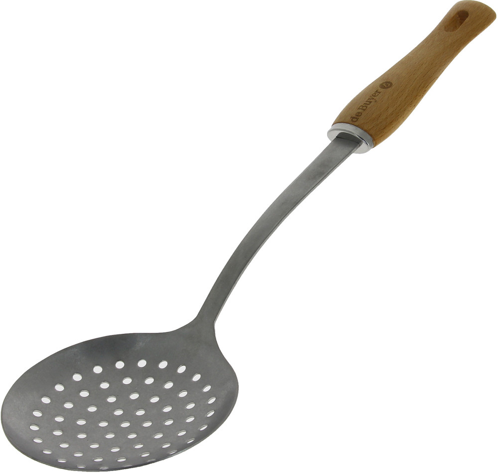 Stylowe utensylia kuchenne B BOIS marki DE BUYER to uniwersalny zestaw akcesoriów kuchennych. Rękojeść wykonano z drewna bukowego impregnowanego woskiem pszczelim, część robocza z patynowanej stali nierdzewnej. Wyprodukowane we Francji.