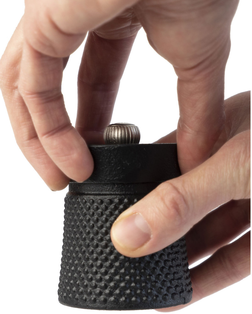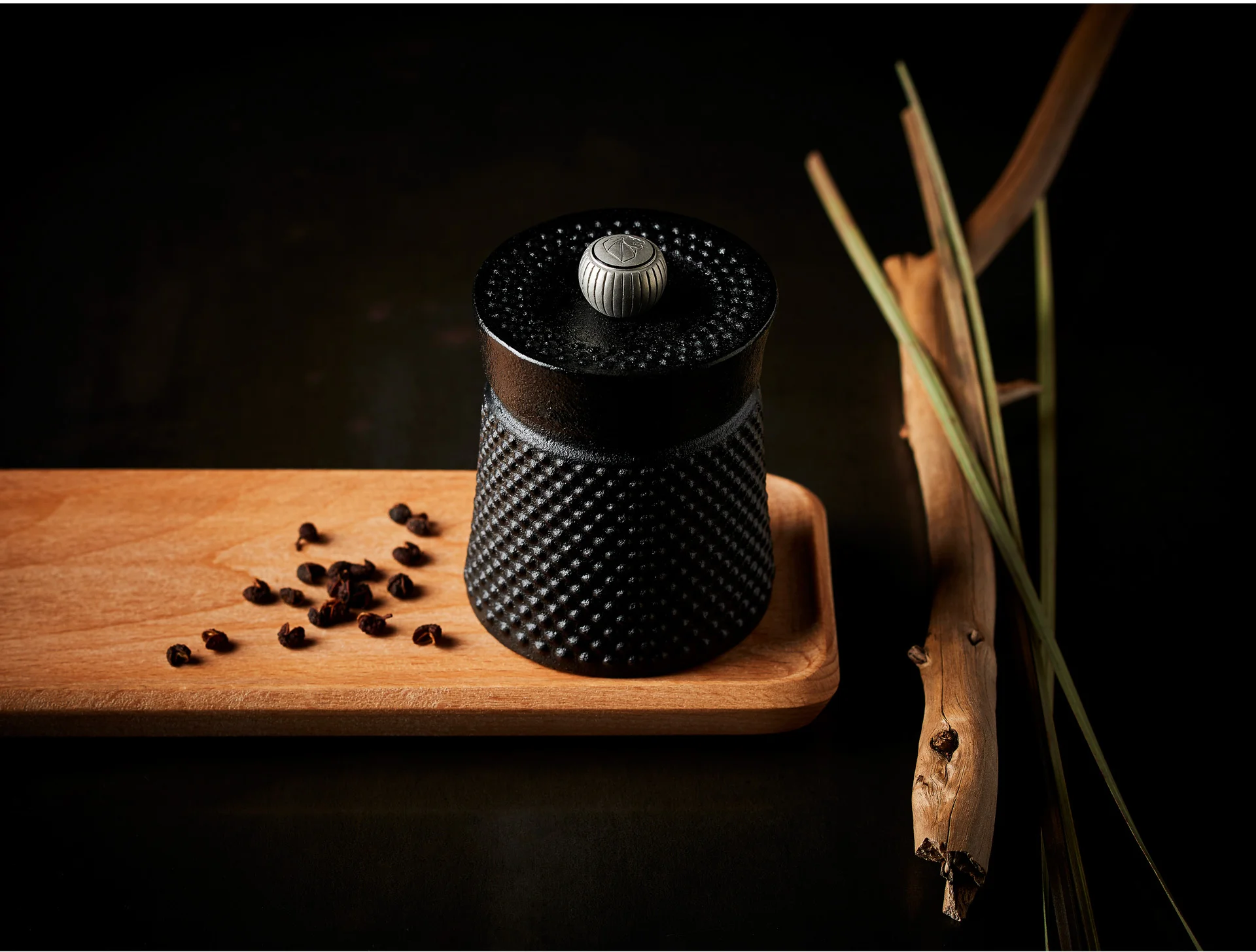 Młynek BALI CAST IRON to powrót do tradycyjnego materiału, do trwałego i ciężkiego żeliwa. Doskonale leży w dłoni. Pomimo niedużego gabarytu, jest dość ciężki. To jednak nie przeszkadza w jego wygodnym użytkowaniu. Waga młynka (0,55kg) jest mocnym nawiązaniem do tradycji. Powierzchnia młynka o charakterystycznej „piaskowej” strukturze podkreśla industrialny styl.