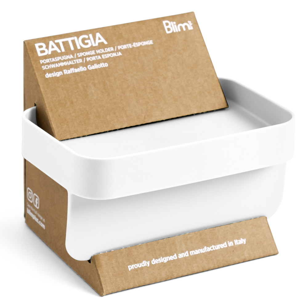 BATTIGIA Ociekacz na gąbkę i ściereczkę krystaliczny biały / BLIM PLUS