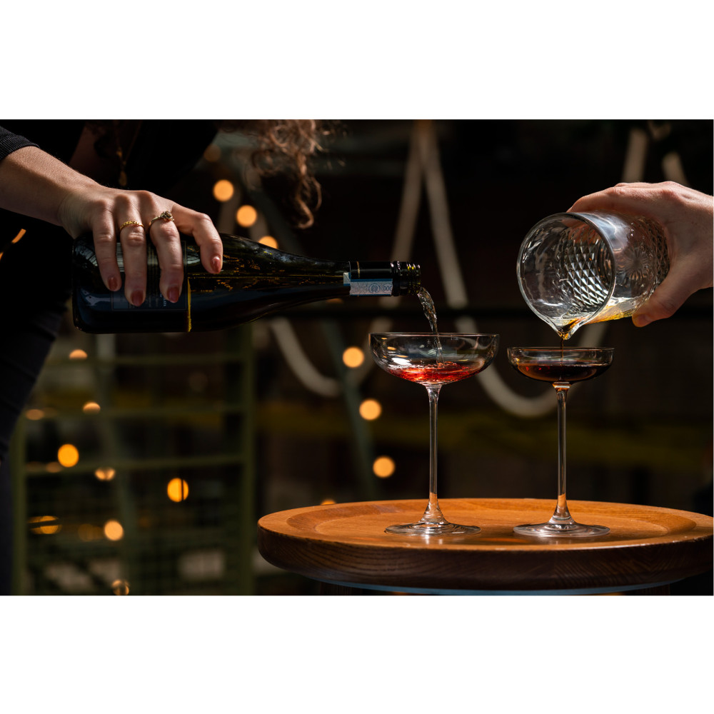 Elegancja i bezpretensjonalność. Charakterystyczna, długa i smukła nóżka w połączeniu z szeroką podstawą oraz delikatnie wykończonym brzegiem laserową metodą Finesse Laser Cut Rim, tworzy imponujący, a jednocześnie subtelny wygląd. Każdy kieliszek emanuje elegancją i klasą, nadając wnętrzu niepowtarzalnego charakteru. Przeznaczenie BESPOKE skupia się na serwowaniu drinków straight-up, czyli koktajli wstrząsanych lub mieszanych aż do momentu schłodzenia, a następnie podawanych bez lodu. Wysoka nóżka doskonale zapobiega ogrzewaniu napoju dłońmi.