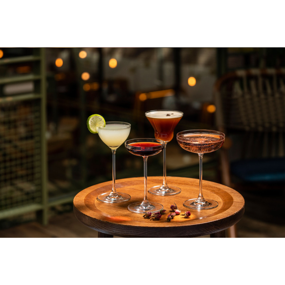 Elegancja i bezpretensjonalność. Charakterystyczna, długa i smukła nóżka w połączeniu z szeroką podstawą oraz delikatnie wykończonym brzegiem laserową metodą Finesse Laser Cut Rim, tworzy imponujący, a jednocześnie subtelny wygląd. Każdy kieliszek emanuje elegancją i klasą, nadając wnętrzu niepowtarzalnego charakteru. Przeznaczenie BESPOKE skupia się na serwowaniu drinków straight-up, czyli koktajli wstrząsanych lub mieszanych aż do momentu schłodzenia, a następnie podawanych bez lodu. Wysoka nóżka doskonale zapobiega ogrzewaniu napoju dłońmi.