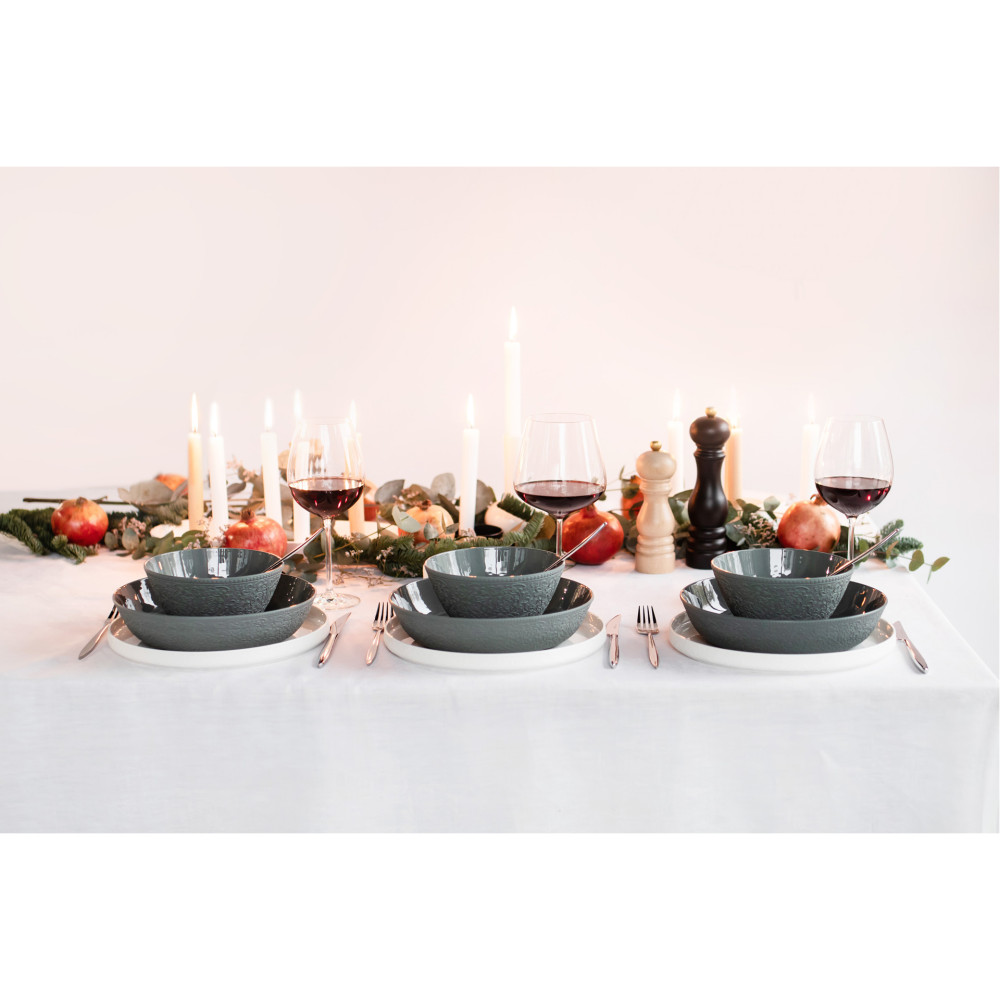 BET-ON to propozycja dla miłośników delikatnej porcelany. Subtelne wzory i modny kolor „zgaszonej” zieleni” to wyróżniający element linii BET-ON. Niebanalne połączenie gładkiego matu z błyszczącym wykończeniem wewnętrznej części naczyń nadaje niepowtarzalny efekt. Aby dodać szczyptę ekstrawagancji, polecamy połączyć naczynia tej linii ze złotymi sztućcami LUI GOLD. Prosta forma płaskich talerzy oraz mis z prostym-minimalistycznym rantem, nadaje całej kolekcji niezwykłej lekkości.