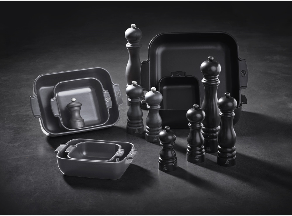 BISTRO GRAPHITE jest hołdem dla pierwszego młynka do pieprzu „Z” wyprodukowanego w 1874 roku przez firmę Peugeot. Młynki BISTRO GRAPHITEw nowoczesnej odsłonie przywołują przyjazną i niezobowiązującą atmosferę francuskich kafejek, czyniąc wspólny posiłek miłym wspomnieniem. Kolekcja BISTRO GRAPHITE to piękne połączenie drewna bukowego w ciemnym kolorze z minimalistyczną, stalową nakrętką. Antracytowo-szare wykończenie zaskakuje metalicznymi refleksami, które delikatnie współgrają ze słojami drewna bukowego.
