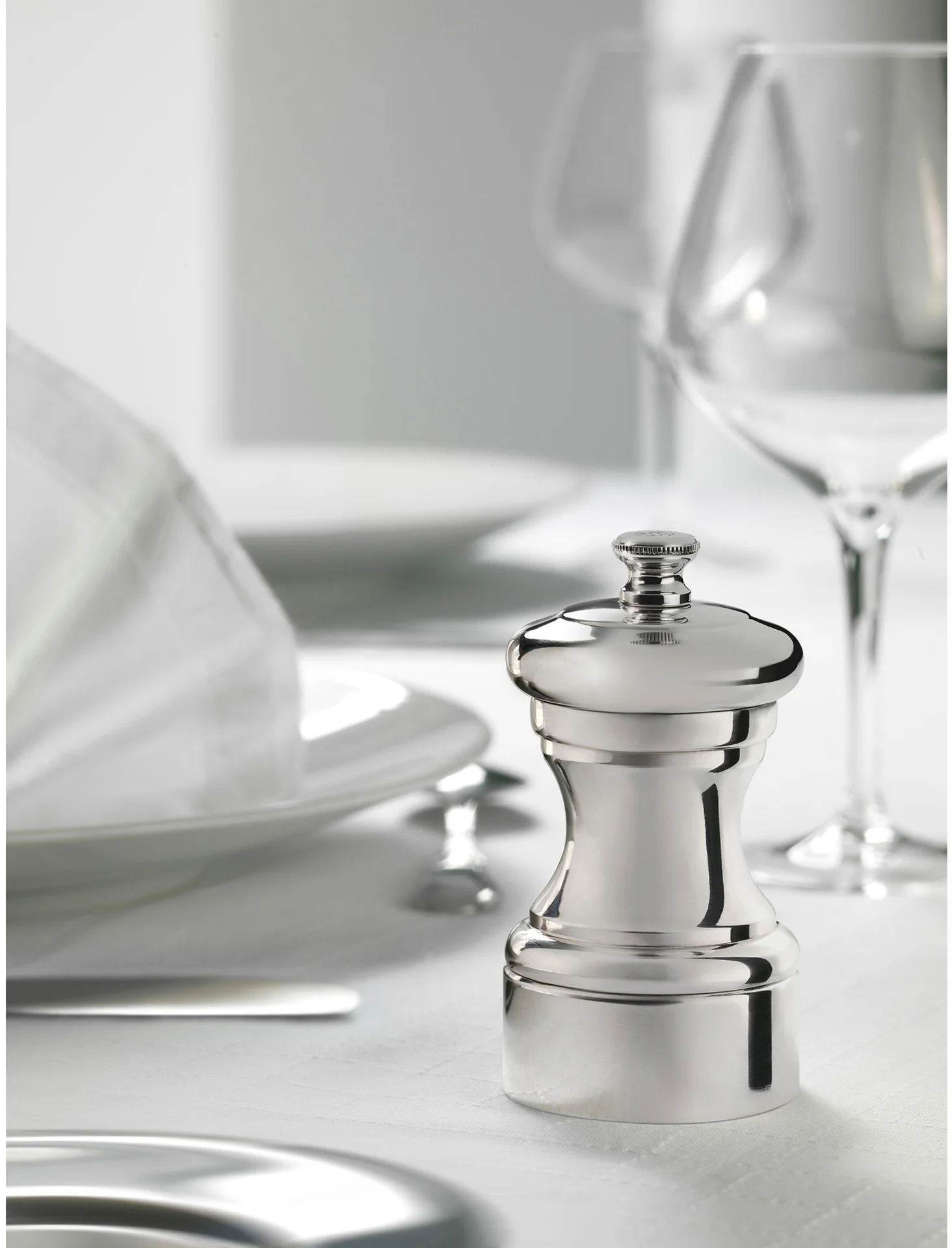 Młynek MIGNONNETTE Peugeot to reedycja najstarszego modelu powstałego w 1874 roku, który zdobił wszystkie najwspanialsze francuskie bankiety i stoły. Ten model zachwyci miłośników zabytkowych i szlachetnych przedmiotów. W całości wykonany jest z posrebrzanej stali, co stanowi niezwykły efekt wizualny pełny elegancji i szyku. Pokrętło z posrebrzanej stali służy do regulacji rozmiaru mielenia przyprawy. Podobnie jak wszystkie przedmioty ze srebra, ten młynek wymaga szczególnej pielęgnacji. Młynek należy regularnie polerować irchą lub inną miękką ściereczką. Do konserwacji używaj wyłącznie preparatów do czyszczenia srebra.