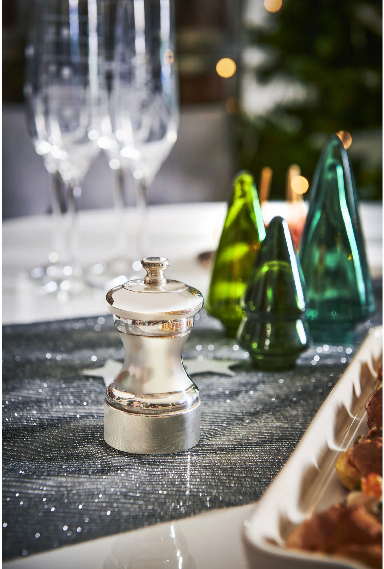 Młynek MIGNONNETTE Peugeot to reedycja najstarszego modelu powstałego w 1874 roku, który zdobił wszystkie najwspanialsze francuskie bankiety i stoły. Ten model zachwyci miłośników zabytkowych i szlachetnych przedmiotów. W całości wykonany jest z posrebrzanej stali, co stanowi niezwykły efekt wizualny pełny elegancji i szyku. Pokrętło z posrebrzanej stali służy do regulacji rozmiaru mielenia przyprawy. Podobnie jak wszystkie przedmioty ze srebra, ten młynek wymaga szczególnej pielęgnacji. Młynek należy regularnie polerować irchą lub inną miękką ściereczką. Do konserwacji używaj wyłącznie preparatów do czyszczenia srebra.
