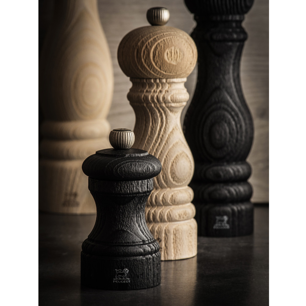Projektanci firmy PEUEGOT postanowili wykorzystać drewno, które ze względu na pewne niedoskonałości, odrzucane zostało podczas produkcji innych linii młynków. Aby uzyskać niepowtarzalny, naturalny wygląd, który jest charakterystyczny dla młynków PARIS NATURE, drewno nadające się do ponownego użycia, poddaje się teksturowaniu poprzez natryskiwanie drobinkami łupin orzecha włoskiego. Korpus młynka w całości wykonany jest z drewna bukowego pozyskanego z certyfikowanych lasów PEFC™. Wytoczone drewno zabezpieczane jest ekologicznym lakierem pochodzenia roślinnego składającym się z oleju lnianego i wosku Carnauba. W ten oto sposób zachowano naturalny charakter rysunku drewna i zapewniono jego maksymalną trwałość.