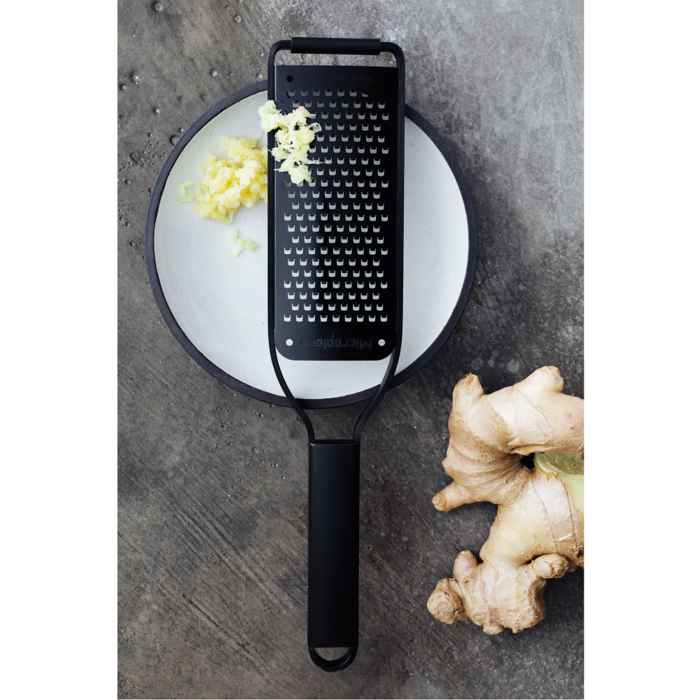 Microplane® jest firmą docenianą na całym świecie przez profesjonalnych szefów kuchni i entuzjastów gotowania.Uznana na całym świecie amerykańska firma Microplane jest producentem z 50-letnim doświadczeniem, który zastosował do produkcji tarek technologię fototrawienia - innowacyjny proces zaprojektowany specjalnie do tworzenia nieskazitelnie ostrych krawędzi tnących. Maleńkie zęby zachowują się jak niezwykle ostre noże do precyzyjnego krojenia składników. Nie rozdzierają i nie zgniatają produktów jak większość dostępnych na rynku „tarek tłoczonych”. Te specjalistyczne ostrza sprawiają, że jedzenie nie przykleja się ani nie blokuje, ale delikatnie przesuwa się po powierzchni cięcia, zapewniając doskonałe rezultaty ścierania na drobne wiórki i nitki, a produkty wilgotne na miazgę.