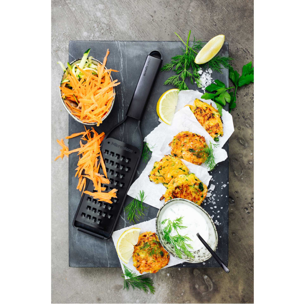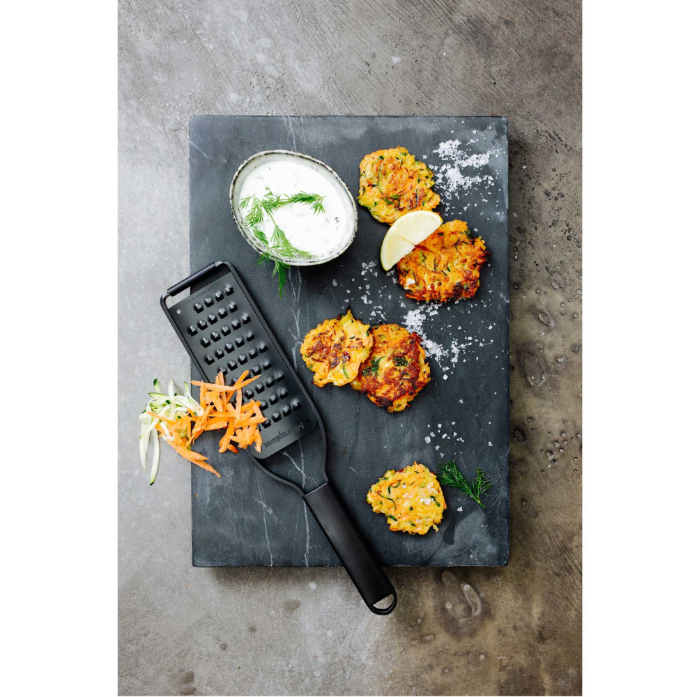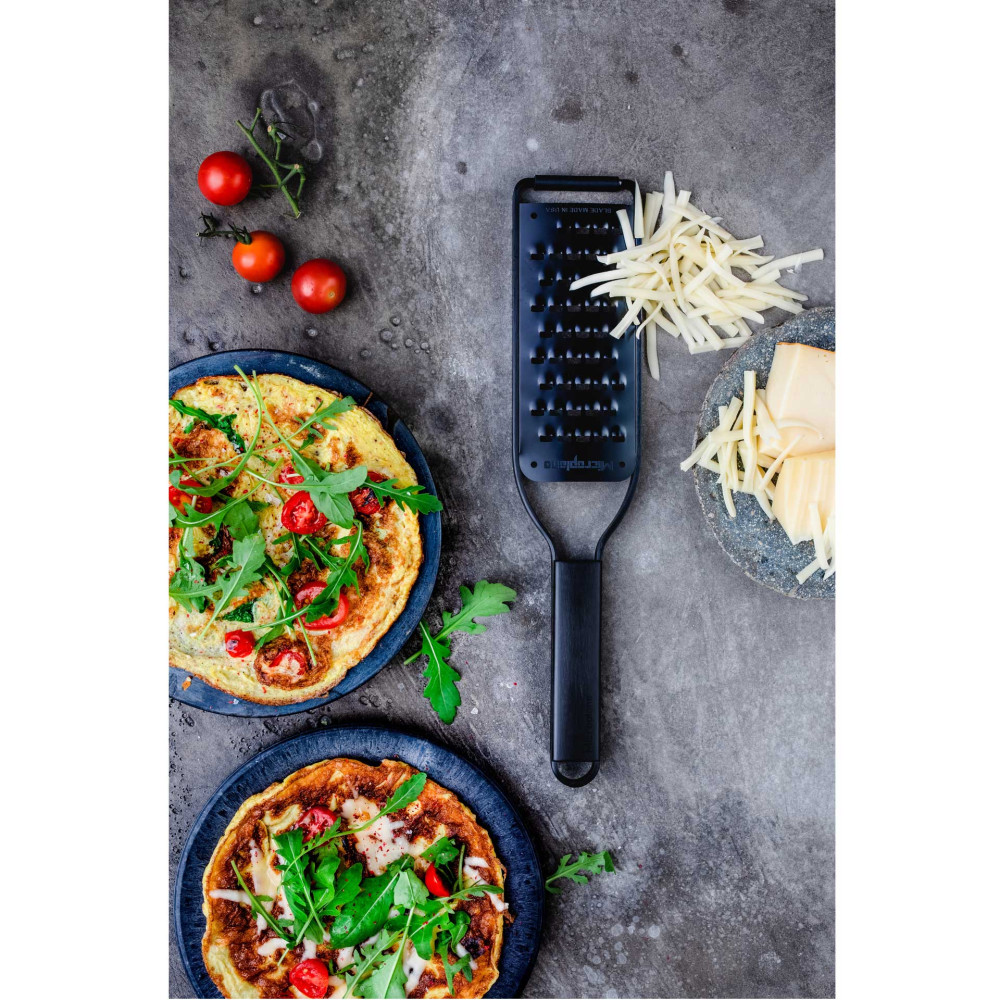 Microplane® jest firmą docenianą na całym świecie przez profesjonalnych szefów kuchni i entuzjastów gotowania.Uznana na całym świecie amerykańska firma Microplane jest producentem z 50-letnim doświadczeniem, który zastosował do produkcji tarek technologię fototrawienia - innowacyjny proces zaprojektowany specjalnie do tworzenia nieskazitelnie ostrych krawędzi tnących. Maleńkie zęby zachowują się jak niezwykle ostre noże do precyzyjnego krojenia składników. Nie rozdzierają i nie zgniatają produktów jak większość dostępnych na rynku „tarek tłoczonych”. Te specjalistyczne ostrza sprawiają, że jedzenie nie przykleja się ani nie blokuje, ale delikatnie przesuwa się po powierzchni cięcia, zapewniając doskonałe rezultaty ścierania na drobne wiórki i nitki, a produkty wilgotne na miazgę.