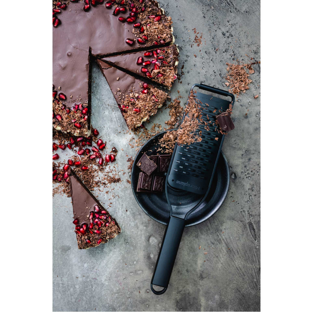 Microplane® jest firmą docenianą na całym świecie przez profesjonalnych szefów kuchni i entuzjastów gotowania.Uznana na całym świecie amerykańska firma Microplane jest producentem z 50-letnim doświadczeniem, który zastosował do produkcji tarek technologię fototrawienia - innowacyjny proces zaprojektowany specjalnie do tworzenia nieskazitelnie ostrych krawędzi tnących. Maleńkie zęby zachowują się jak niezwykle ostre noże do precyzyjnego krojenia składników. Nie rozdzierają i nie zgniatają produktów jak większość dostępnych na rynku „tarek tłoczonych”. Te specjalistyczne ostrza sprawiają, że jedzenie nie przykleja się ani nie blokuje, ale delikatnie przesuwa się po powierzchni cięcia, zapewniając doskonałe rezultaty ścierania na drobne wiórki i nitki, a produkty wilgotne na miazgę.