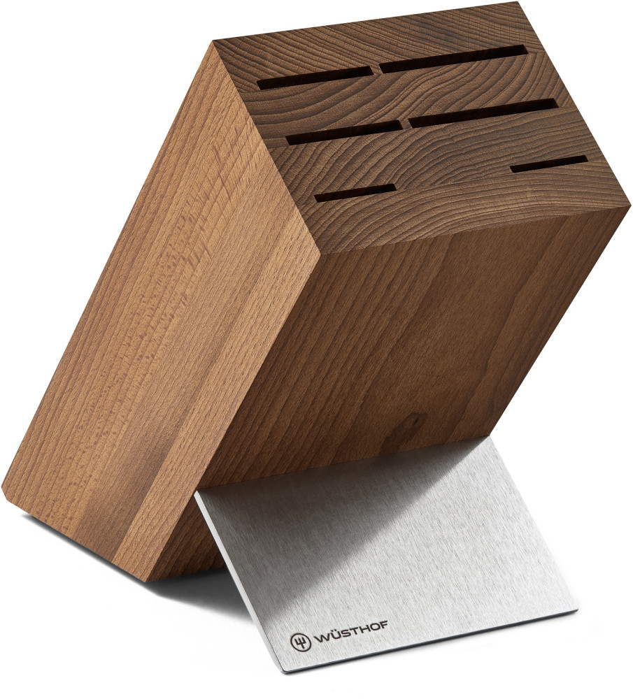 Klasyczny, elegancki blok drewniany na 6 noży wykonany z drewna bukowego. Drewno bukowe poddane specjalnej obróbce termicznej charakteryzuje się zwiększoną trwałością i odpornością. Ponadto zyskuje wyjątkowe, ciepłe wybarwienie dzięki czemu blok Wusthof jest wyjątkową ozdobą blatu. Nóżka ze stali nierdzewnej ozdobiona jest laserowo wyciętym logo marki.