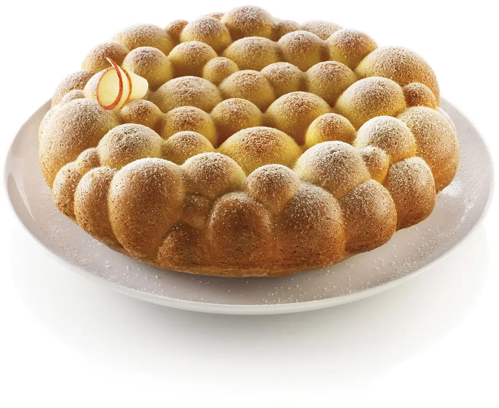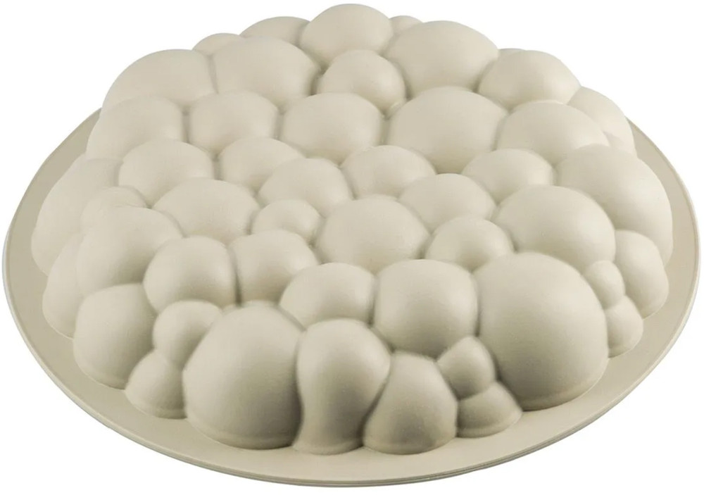 Forma Bolle z linii 3Design firmy Silikomart gwarantuje ona doskonałe rezultaty nie tylko w wersji semifreddo i mousse, ale także w wersji do wypiekania. Innowacyjna technologia 3D marki Silikomart sprawia, że wyjmowanie deserów z formy jest szybkie i łatwe, co pozwala osiągnąć perfekcyjne efekty. Może być wykorzystywana do przygotowywania różnych rodzajów deserów, w tym ciast i wielu innych. Ta forma to imitacja niezliczonej ilości małych bąbelków, co daje zaskakujący i oryginalny efekt w tworzeniu kreatywnych deserów