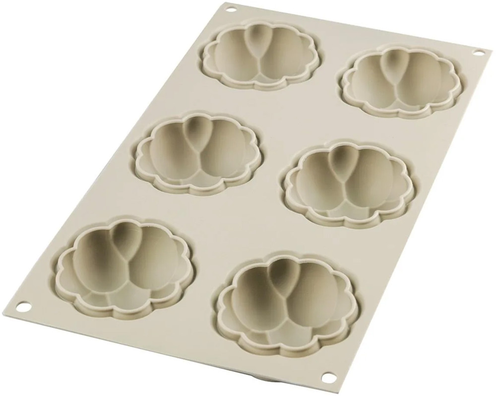 Forma Bollicine z linii 3Design firmy Silikomart gwarantuje ona doskonałe rezultaty nie tylko w wersji semifreddo i mousse, ale także w wersji do wypiekania. Innowacyjna technologia 3D marki Silikomart sprawia, że wyjmowanie deserów z formy jest szybkie i łatwe, co pozwala osiągnąć perfekcyjne efekty. Może być wykorzystywana do przygotowywania różnych rodzajów deserów, w tym ciast i wielu innych. Ta forma to imitacja kompozycji z niezliczoną ilością małych bąbelków, co daje zaskakujący i oryginalny efekt w tworzeniu kreatywnych deserów. Forma silikonowa - Bollicine posiada 6 zagłębień, każde o pojemności 85 ml.