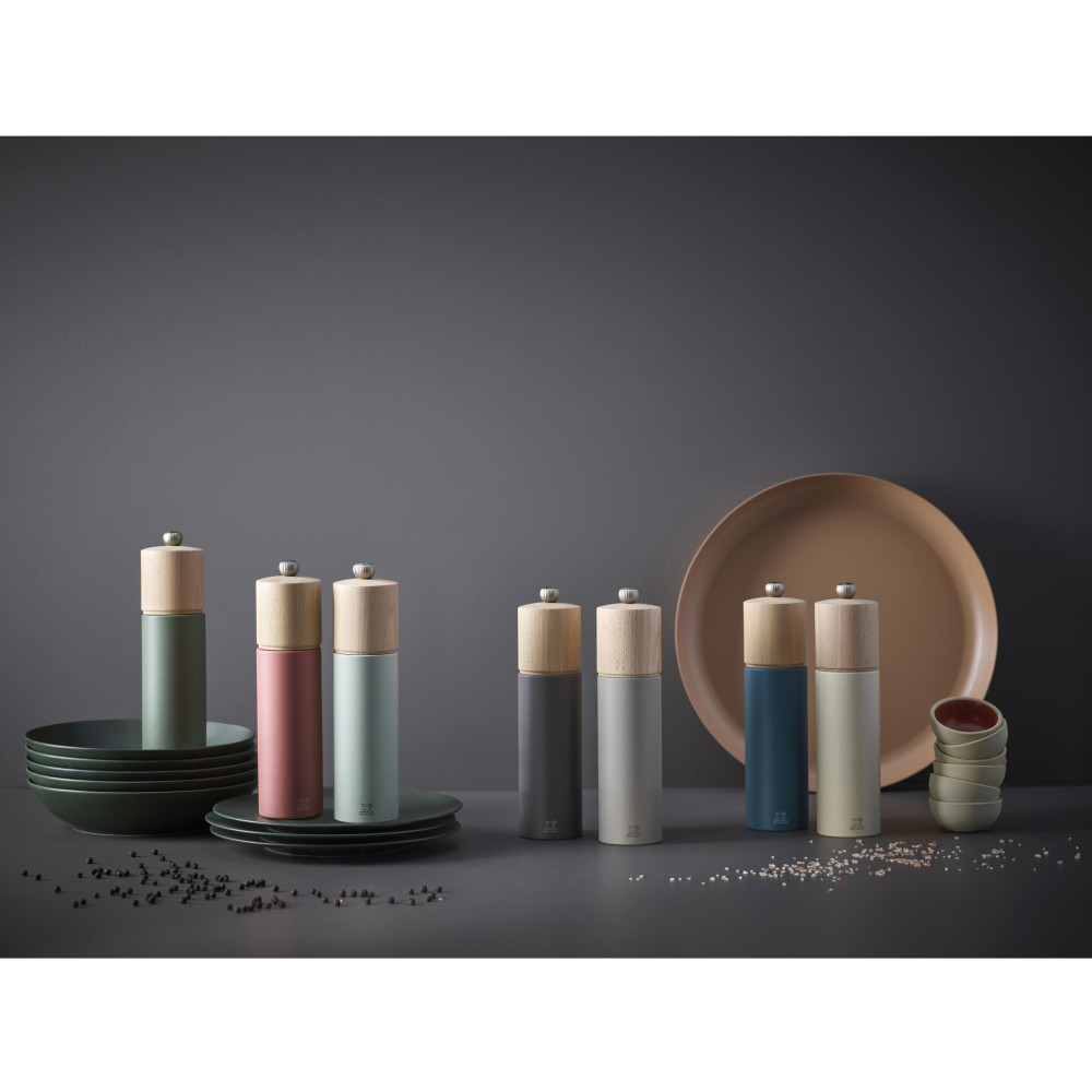 Kolekcja manualnych młynków BOREAL marki Peugeot łączy design i precyzję z pięknem pastelowych kolorów i naturalnym usłojeniem drewna bukowego. Dzięki temu połączeniu producent nawiązuje do świata well-being, w którym harmonia i delikatność pobudzają nasze zmysły. Młynki do soli i pieprzu można dowolnie komponować w ramach dostępnych wariantów kolorystycznych, tworząc zestawy.