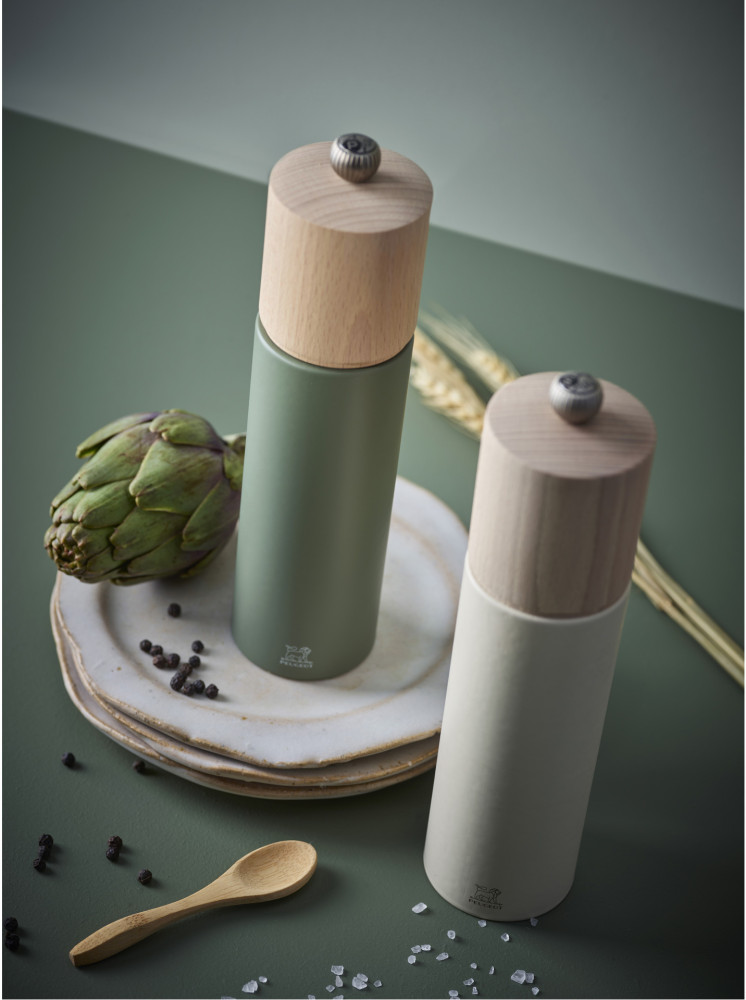 Kolekcja manualnych młynków BOREAL marki Peugeot łączy design i precyzję z pięknem pastelowych kolorów i naturalnym usłojeniem drewna bukowego. Dzięki temu połączeniu producent nawiązuje do świata well-being, w którym harmonia i delikatność pobudzają nasze zmysły. Młynki do soli i pieprzu można dowolnie komponować w ramach dostępnych wariantów kolorystycznych, tworząc zestawy.